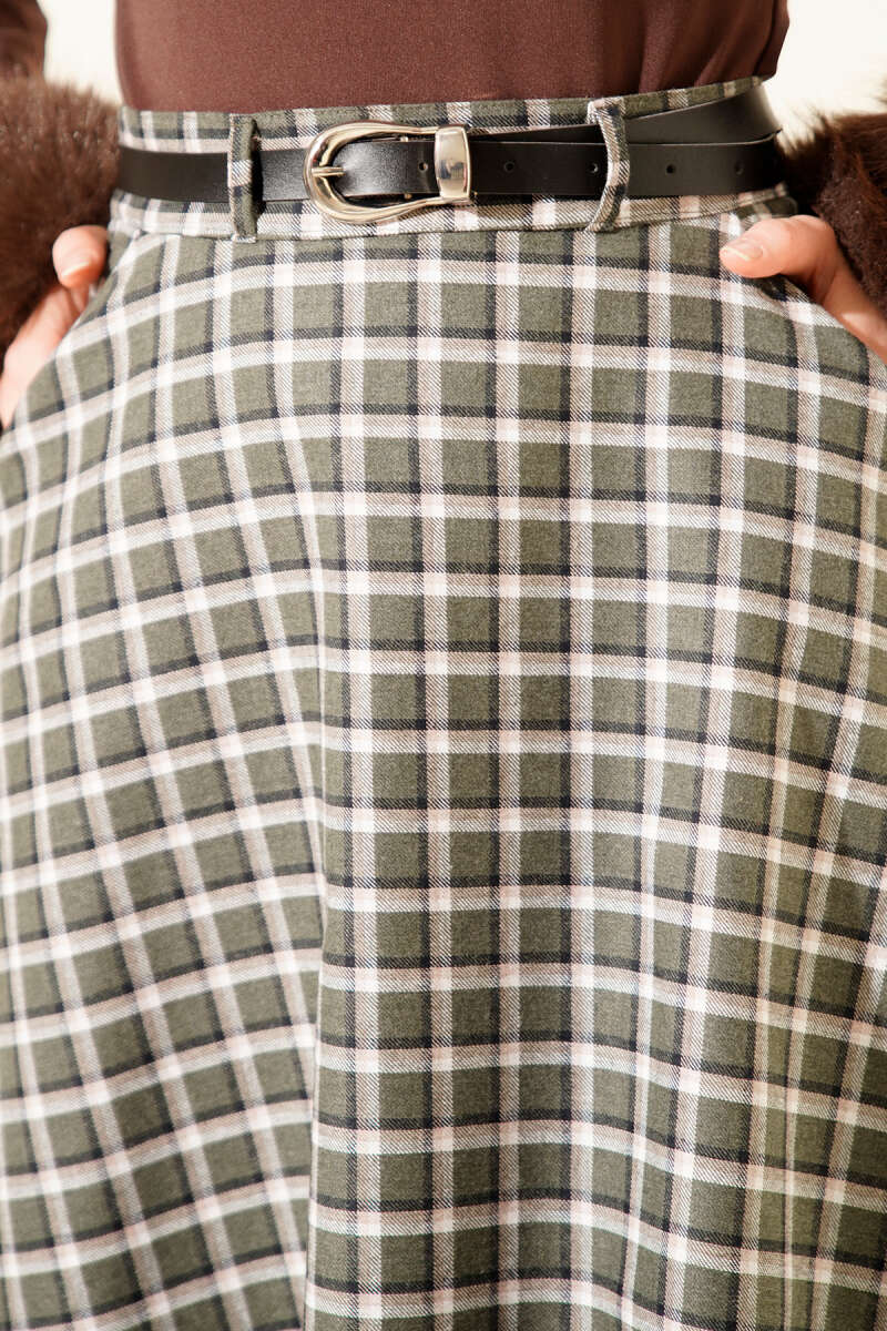 Çiçek Desen Tüllü Kloş Etek Kahve