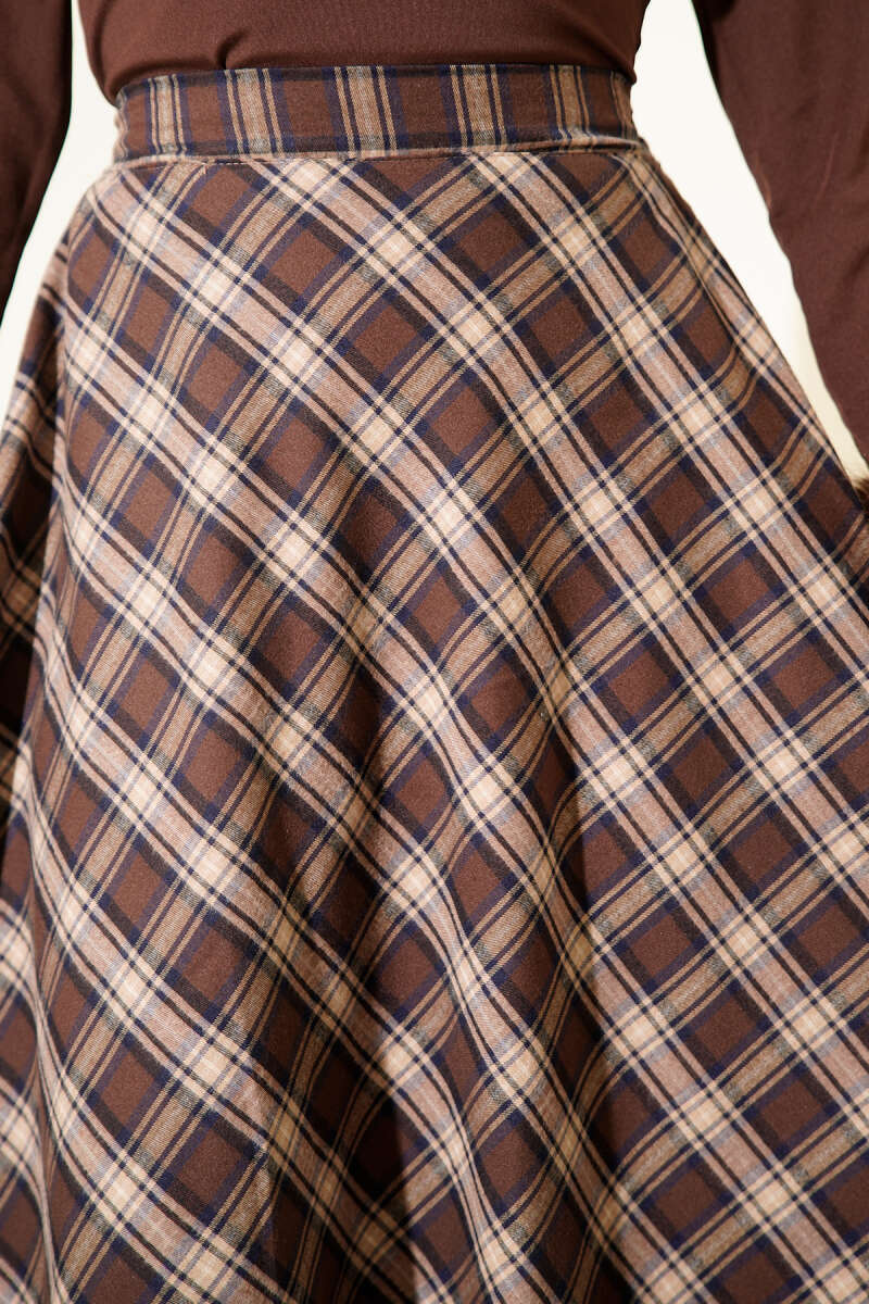 Ekoseli Kloş Etek Kahve