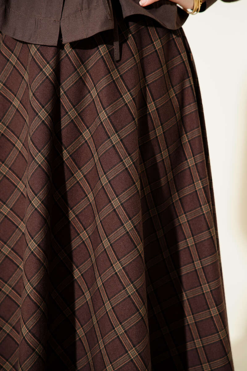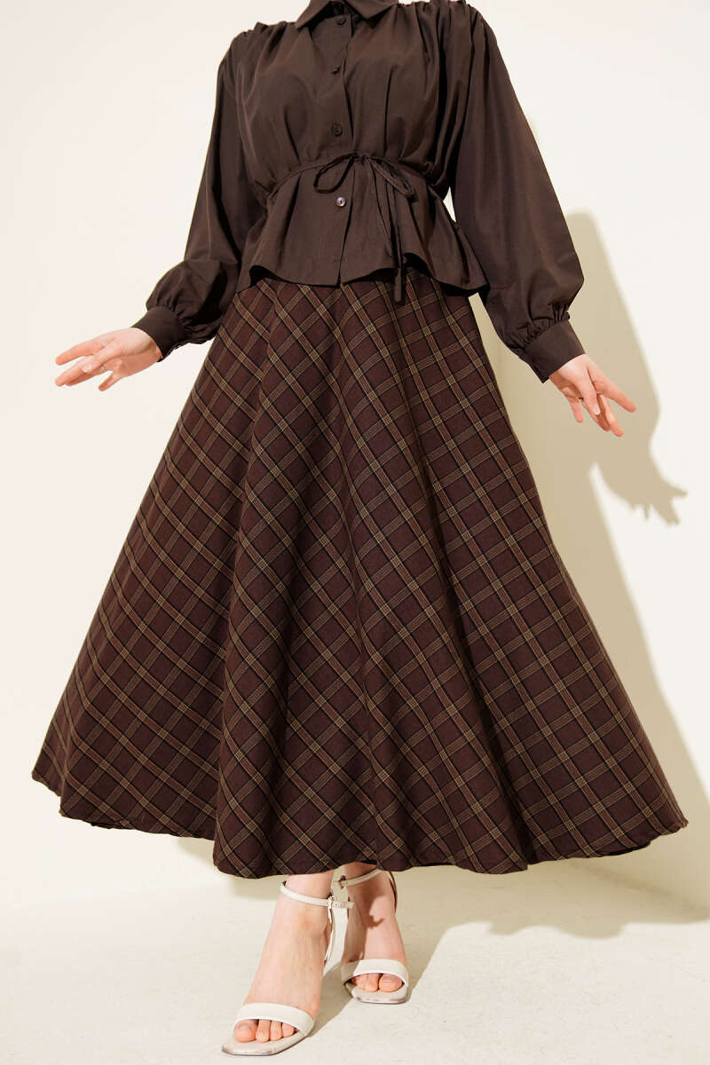 Bel Lastikli Dantelli Kloş Etek Kahve
