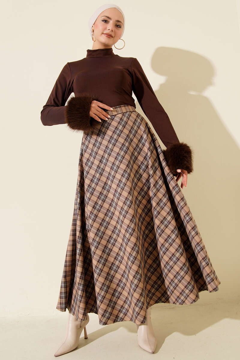 Ekoseli Kloş Etek Kestane