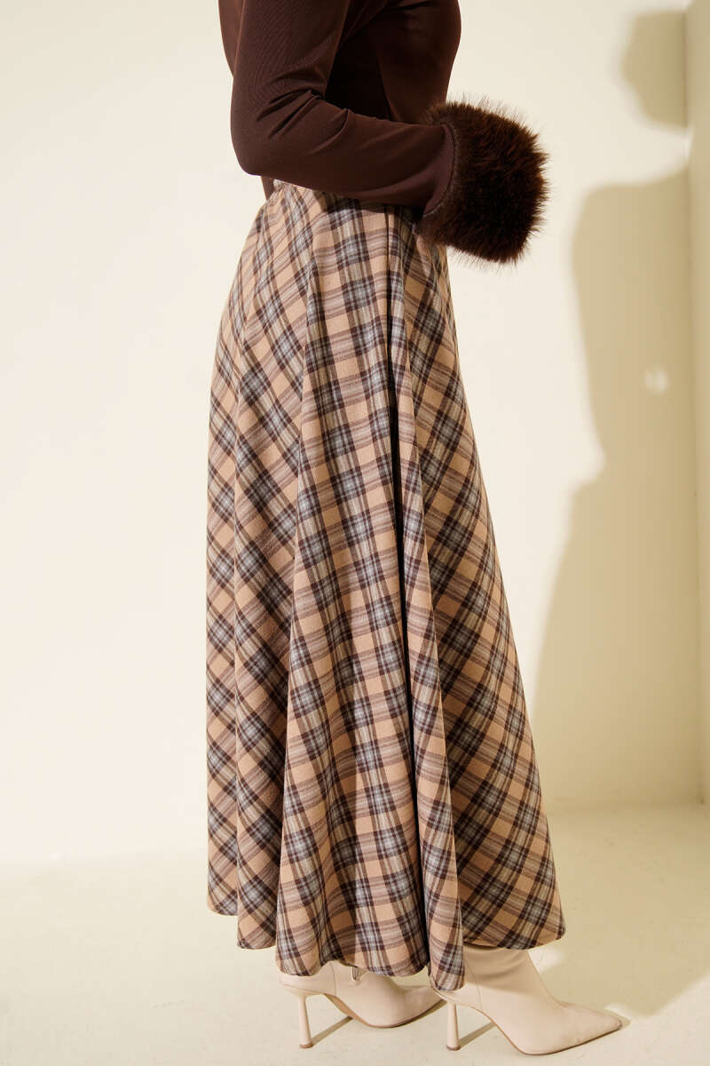 Ekoseli Kloş Etek Latte