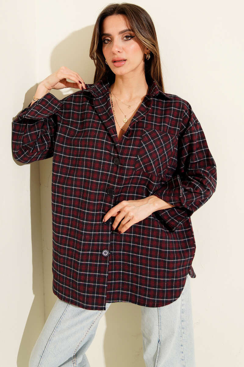 Önü Bağcıklı Keçe Ceket Kırmızı