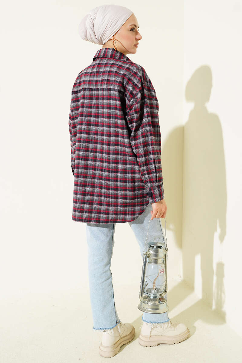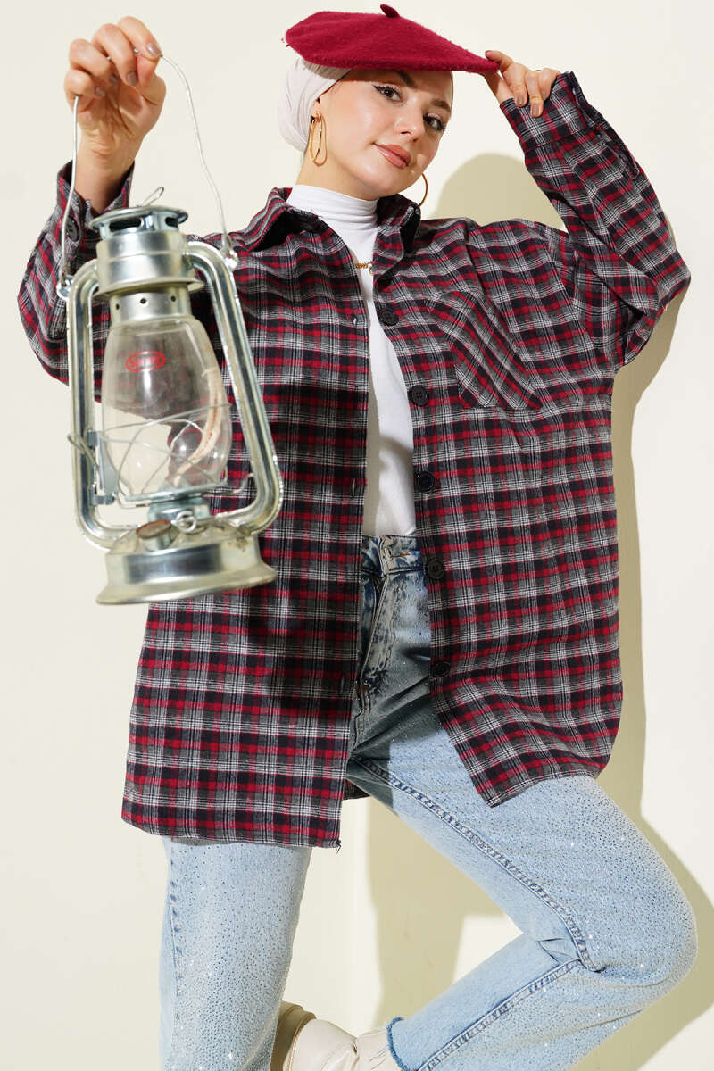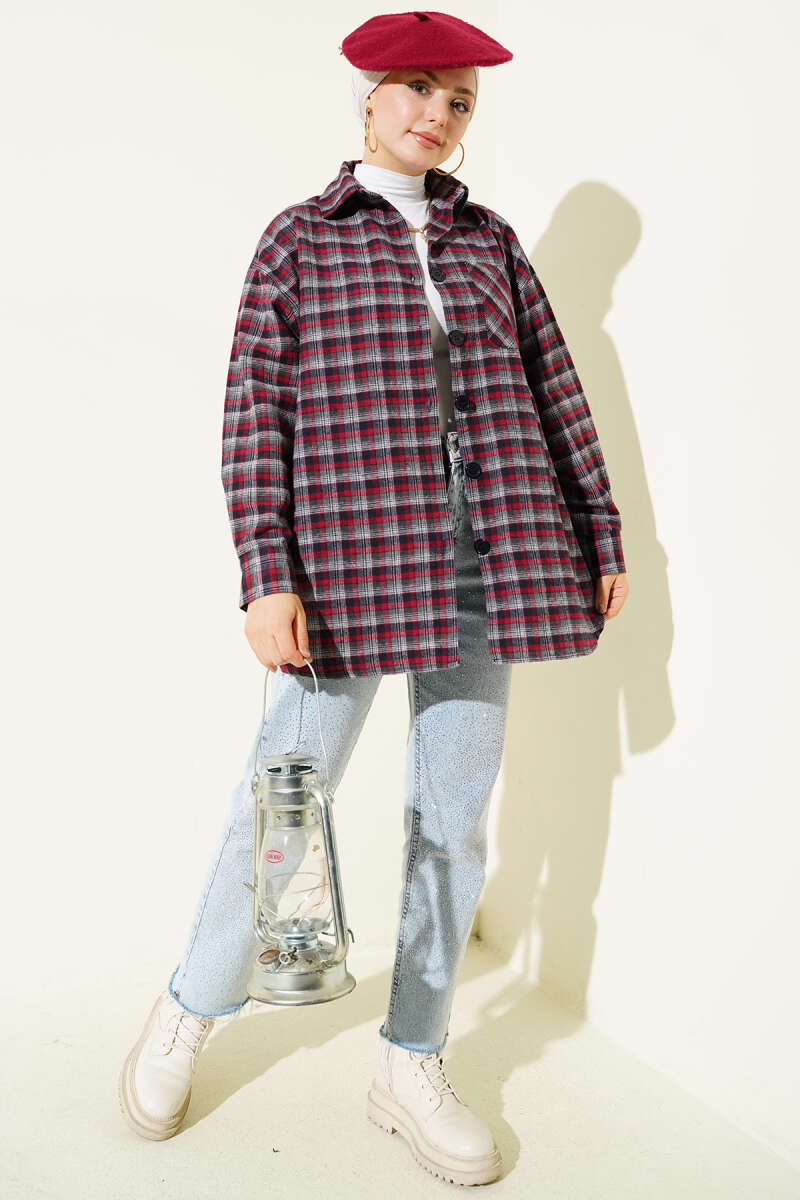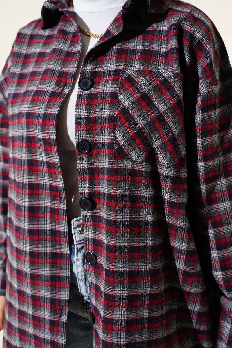Ekoseli Oversize Gömlek Füme