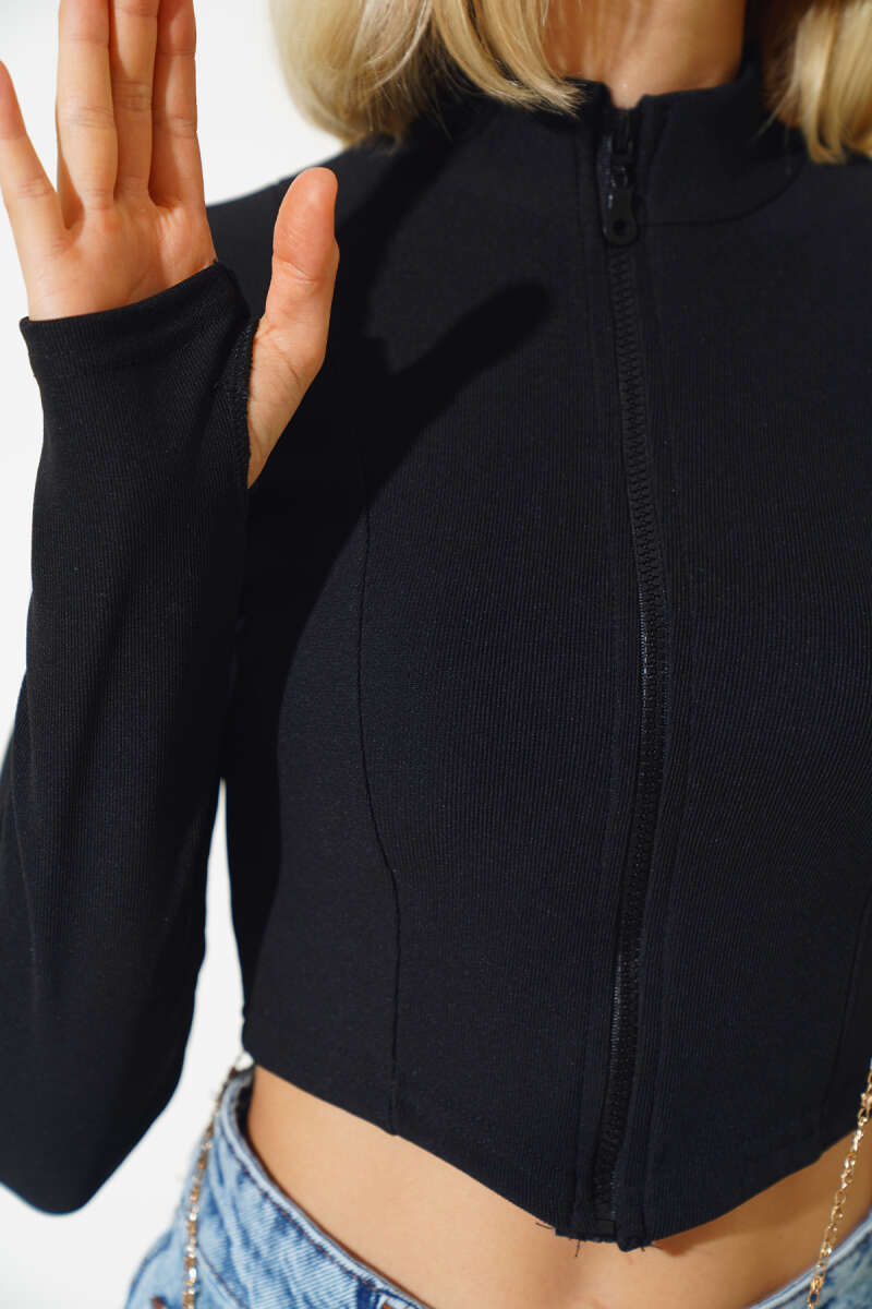 Yarım Düğmeli Nervürlü Tunik Taş
