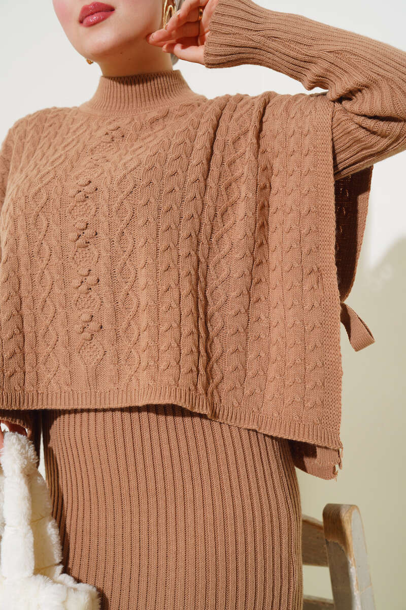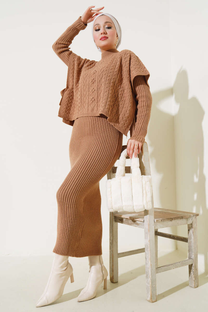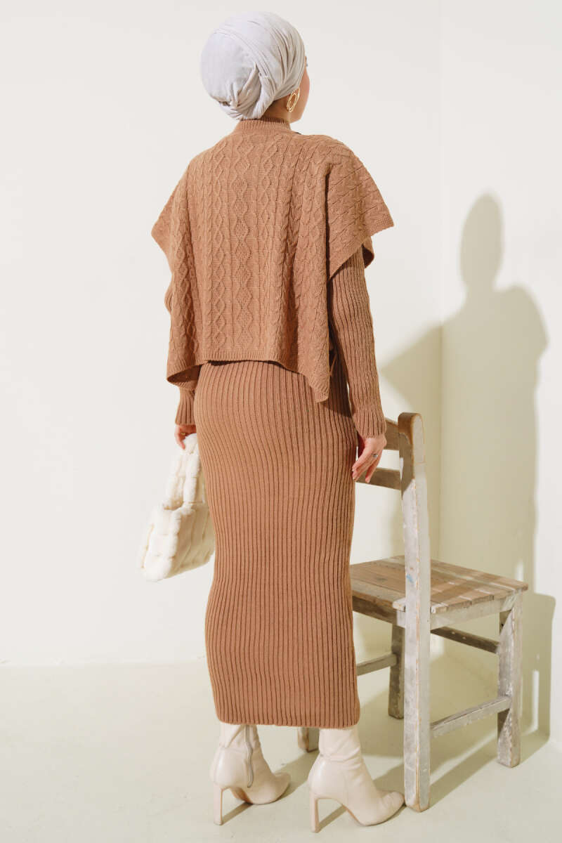 Taşlı Baklava Desen Triko İkili Takım Kahve