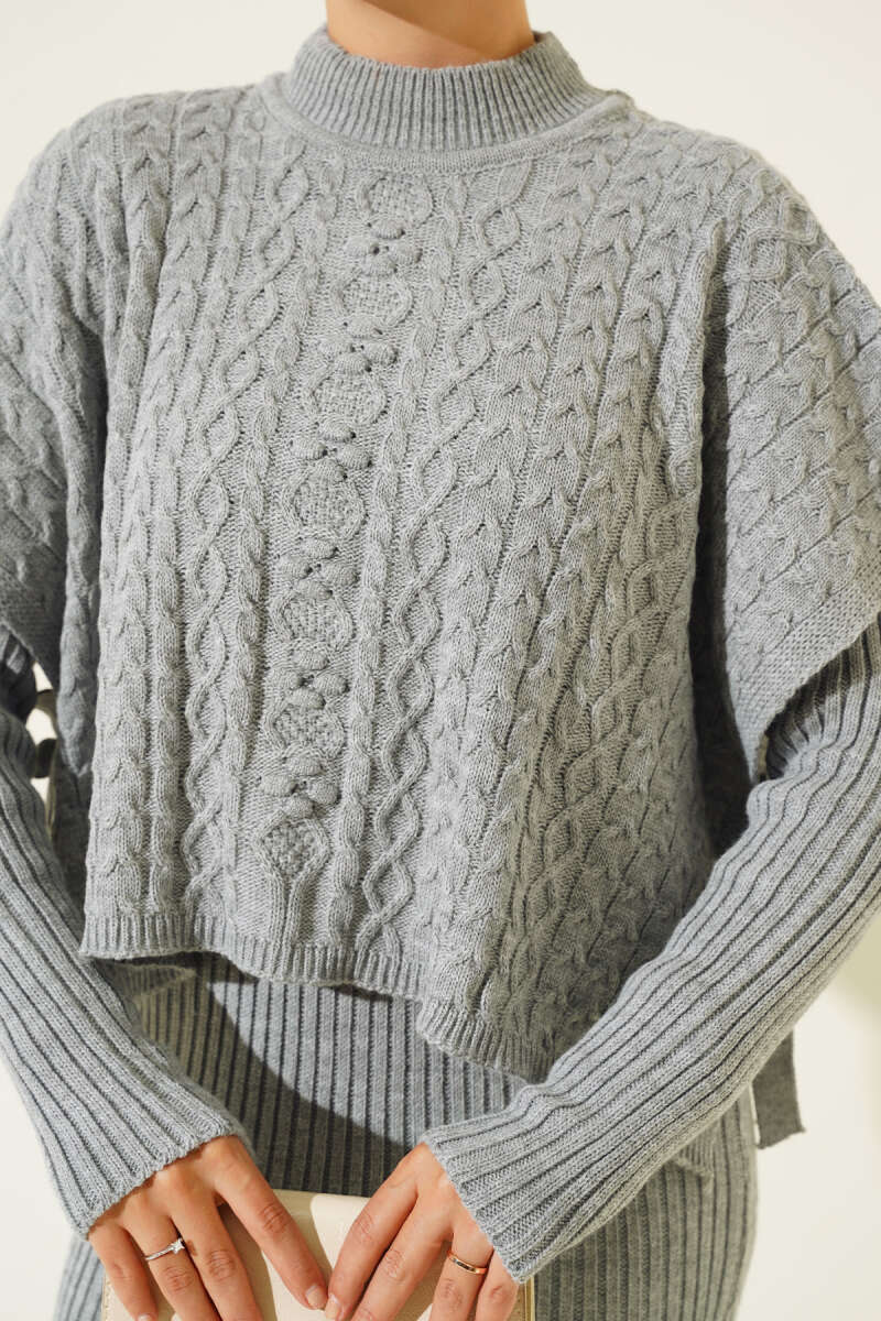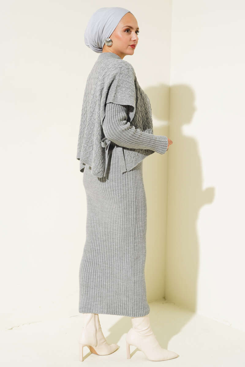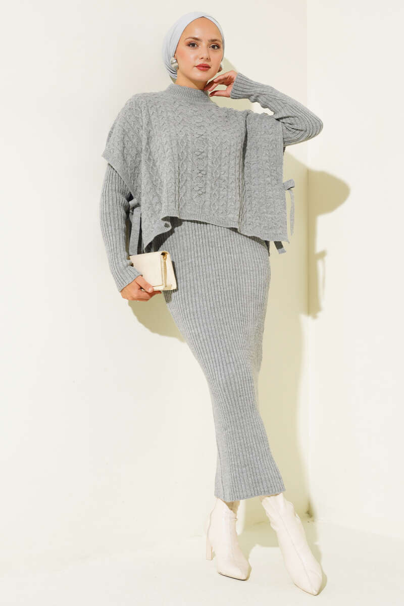 Dikiş Detaylı Basic Triko İkili Takım Füme