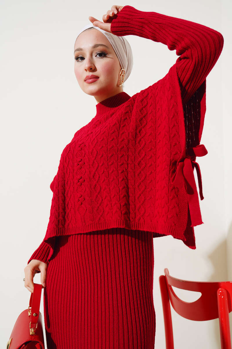Balon Kol Balıkçı Yaka Triko İkili Takım Siyah