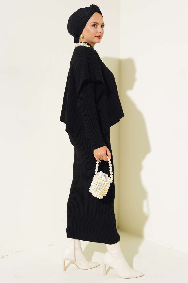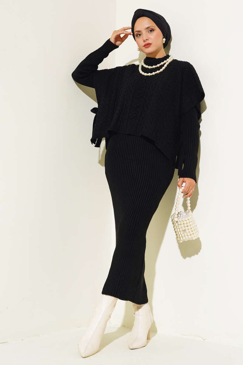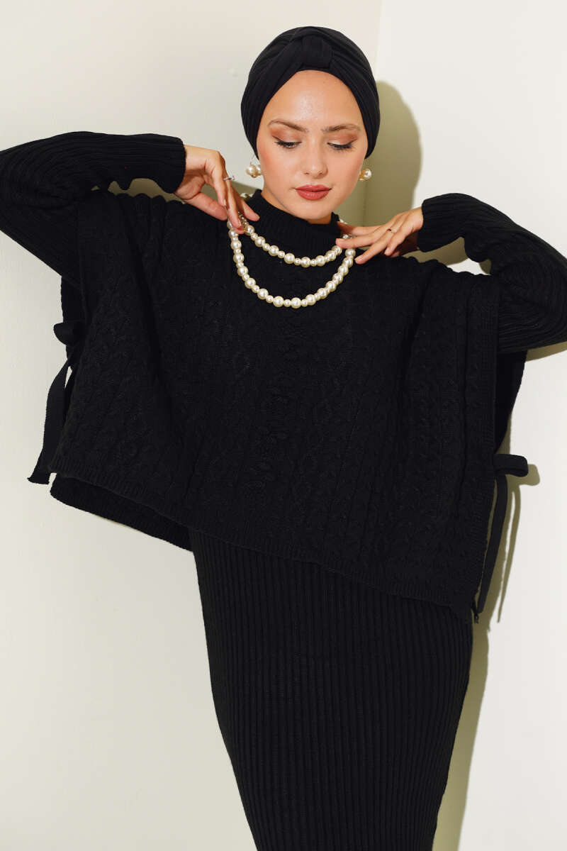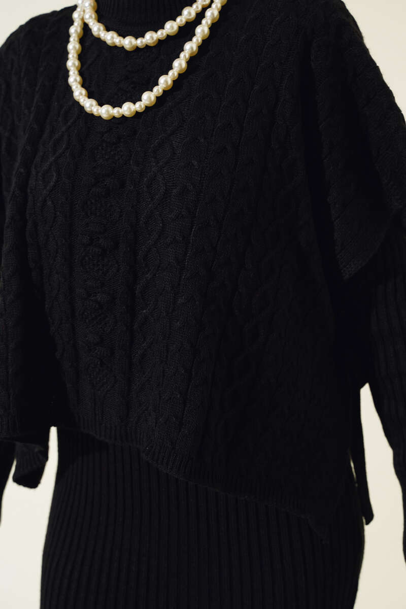 Balon Kol Balıkçı Yaka Triko İkili Takım Siyah