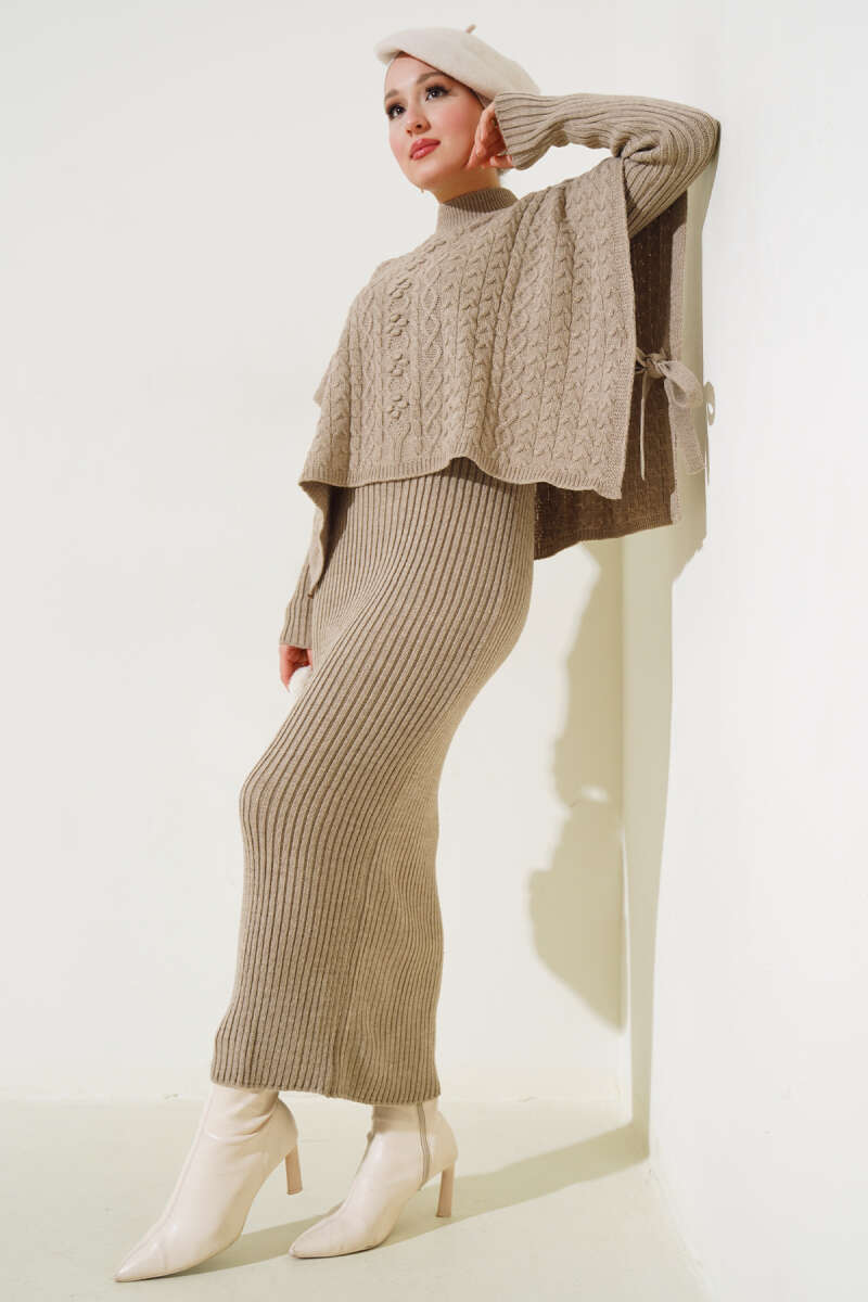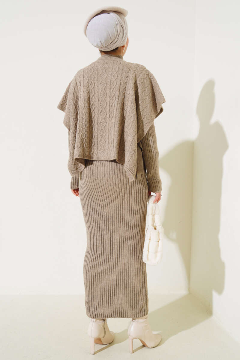 Dikiş Detaylı Basic Triko İkili Takım Vizon