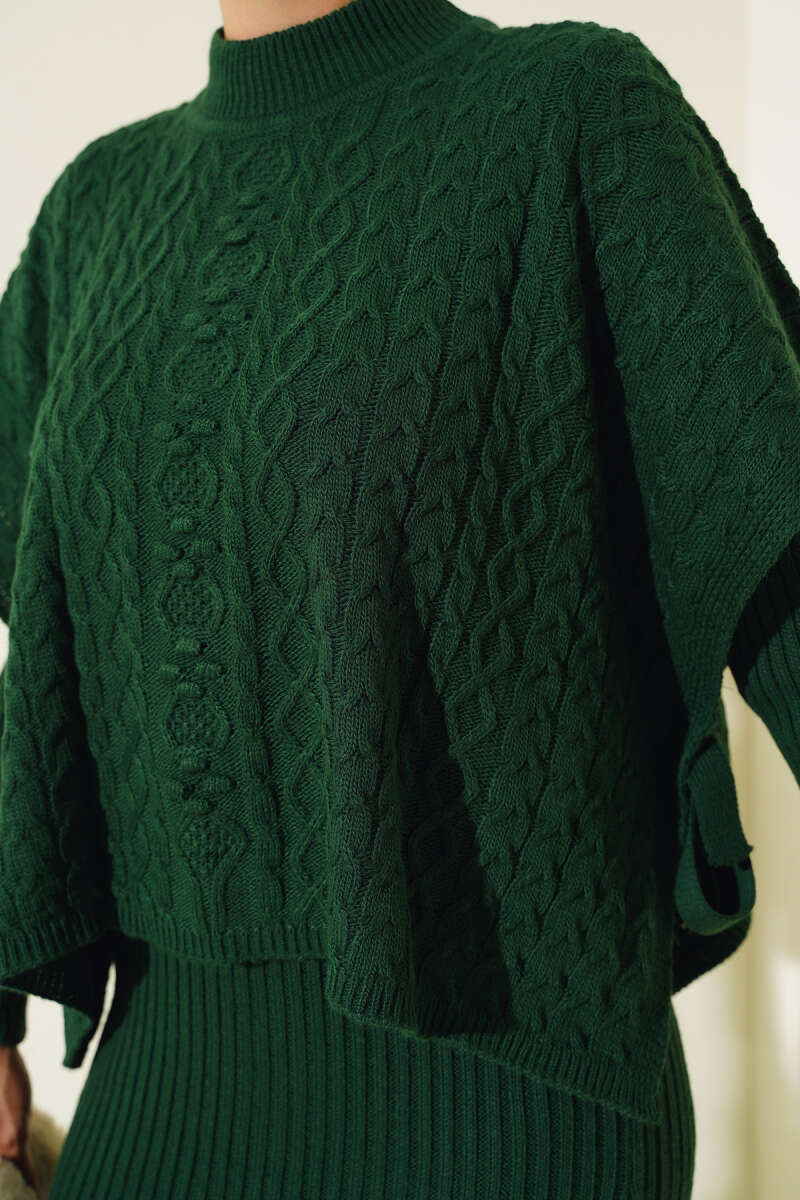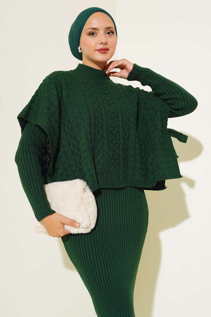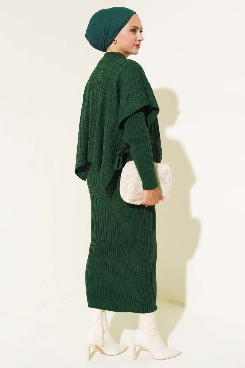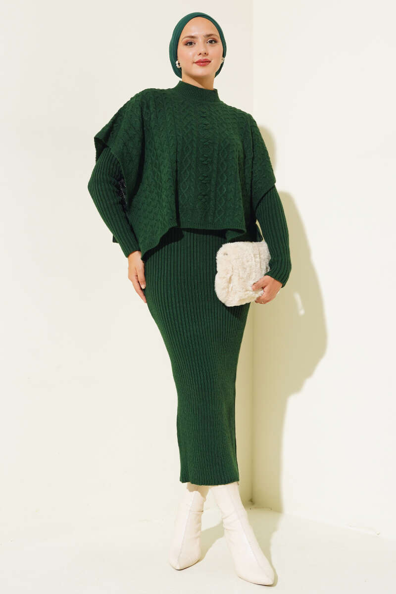 Taşlı Baklava Desen Triko İkili Takım Zümrüt