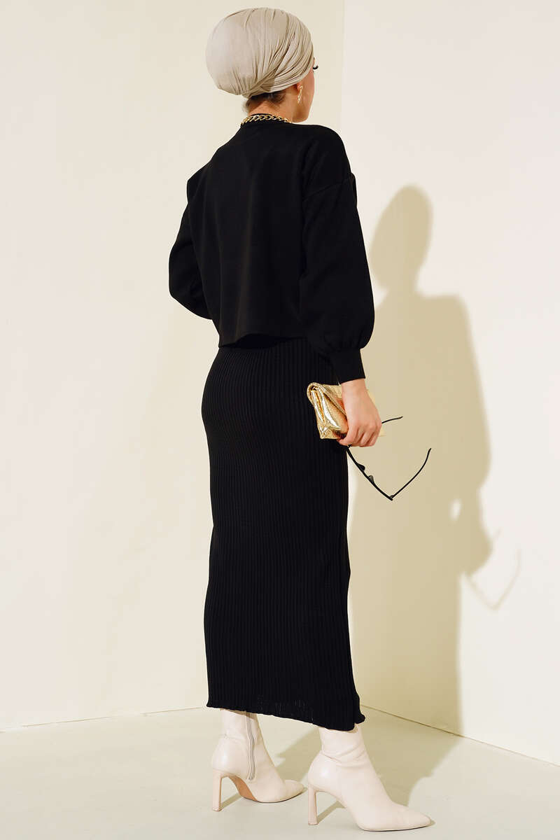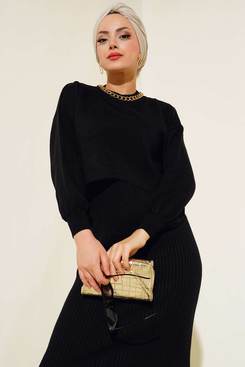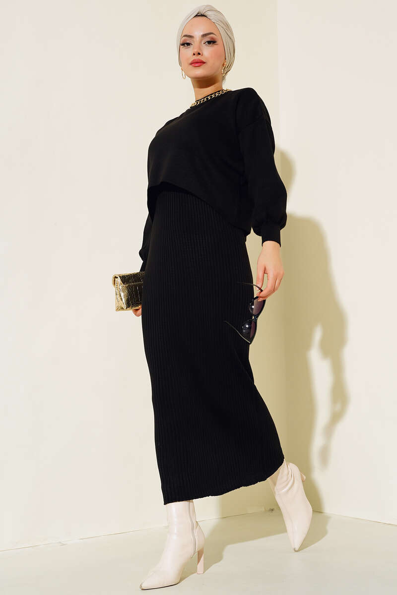 Elbiseli Triko Takım Siyah