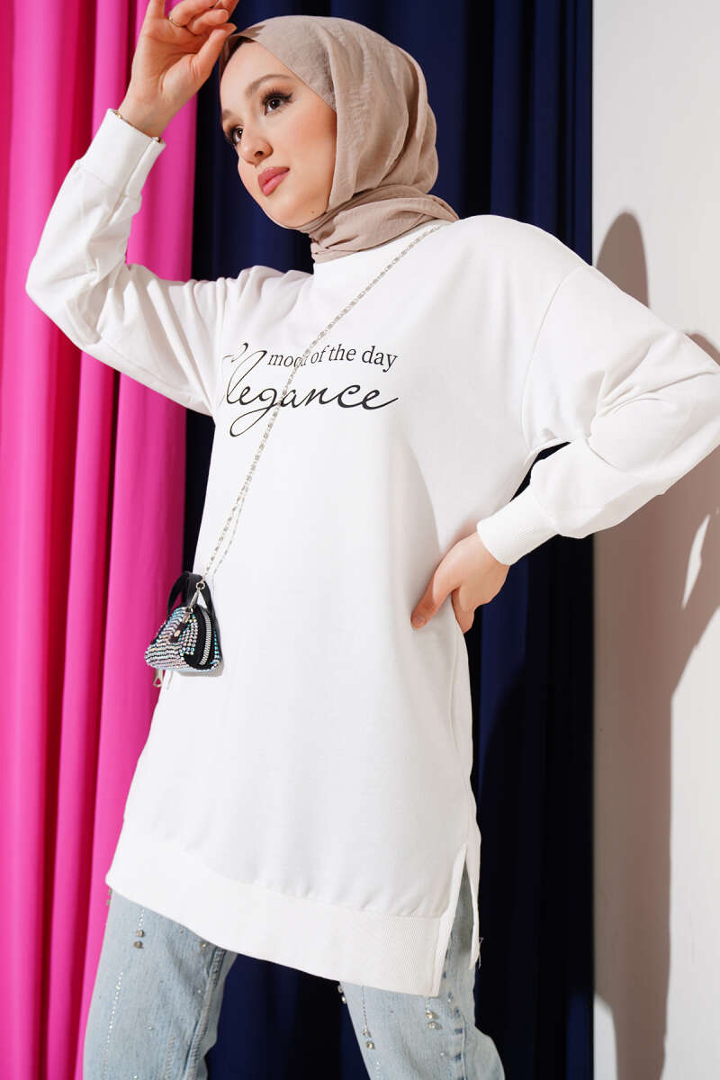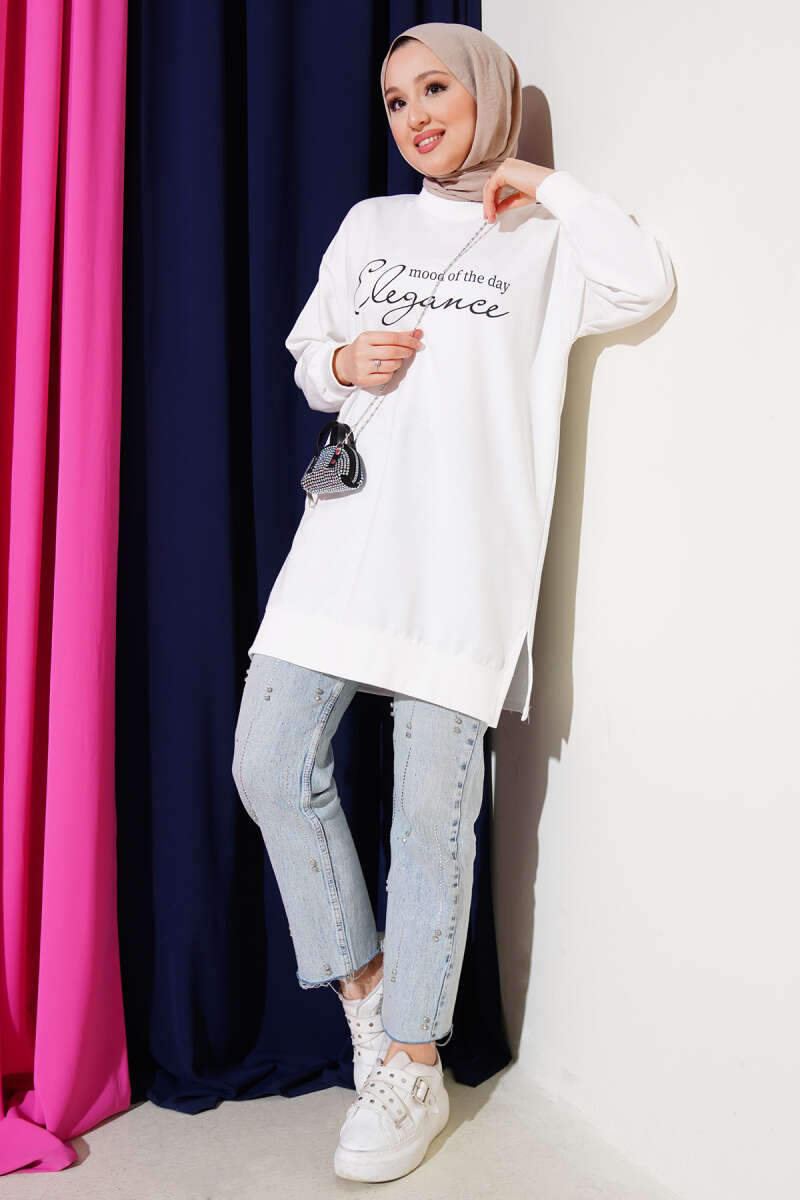 Geniş Bel Lastikli Çımalı Pantolon Beyaz