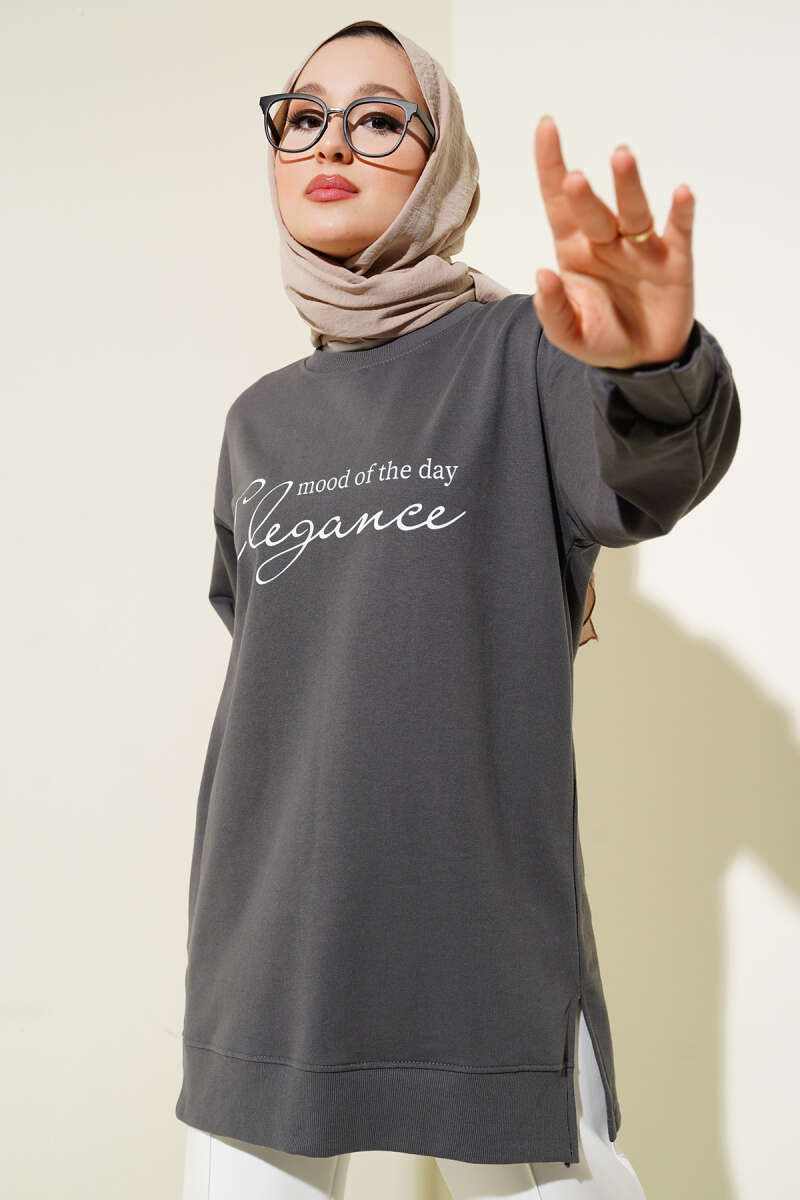 Çizgi Baklava Desen Triko Tunik Yağ Yeşili