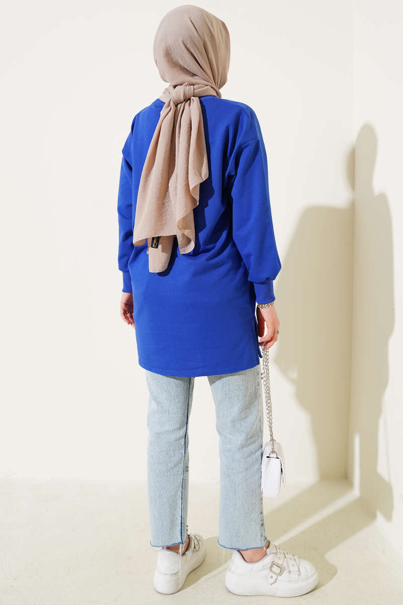 Duble Kol İp Bağcıklı Tunik Saks