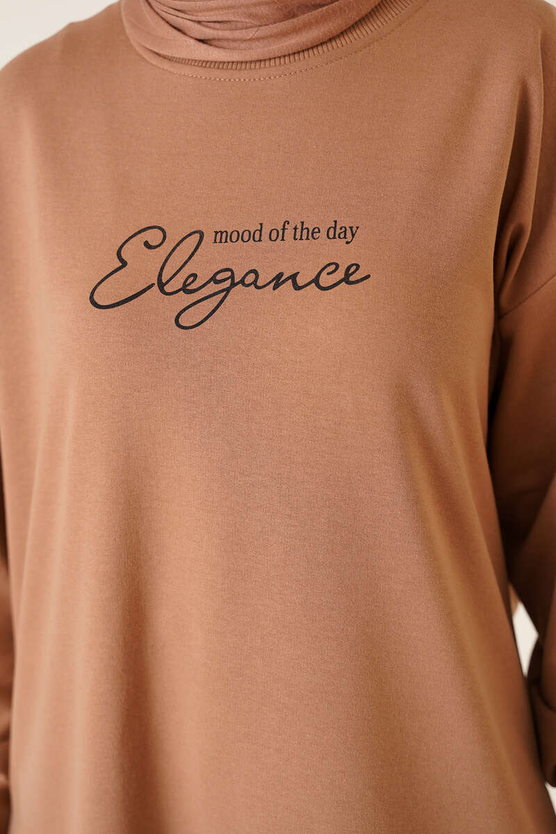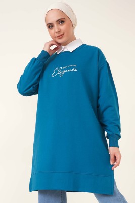 Yeni sezon model tuniğimiz elegance serisine aittir. Bu serimiz ismini tuniğin üzerinde bulunan elegance yazı baskısından almaktadır. Bisiklet yaka olan tuniğimiz düşük omuz modeldir. Yanlarında bulunan yırtmaçları tuniğimize sportif bir görünüm kazandırmıştır. Ribana detaylı olan tuniğimizin renk çeşitleri mevcuttur.