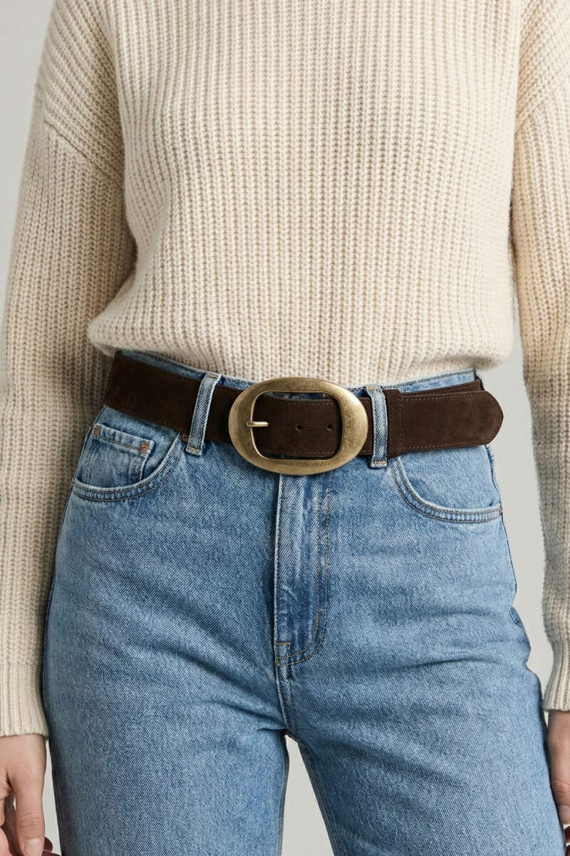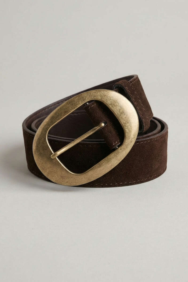 Tokalı Kalın Süet Kemer Kahve