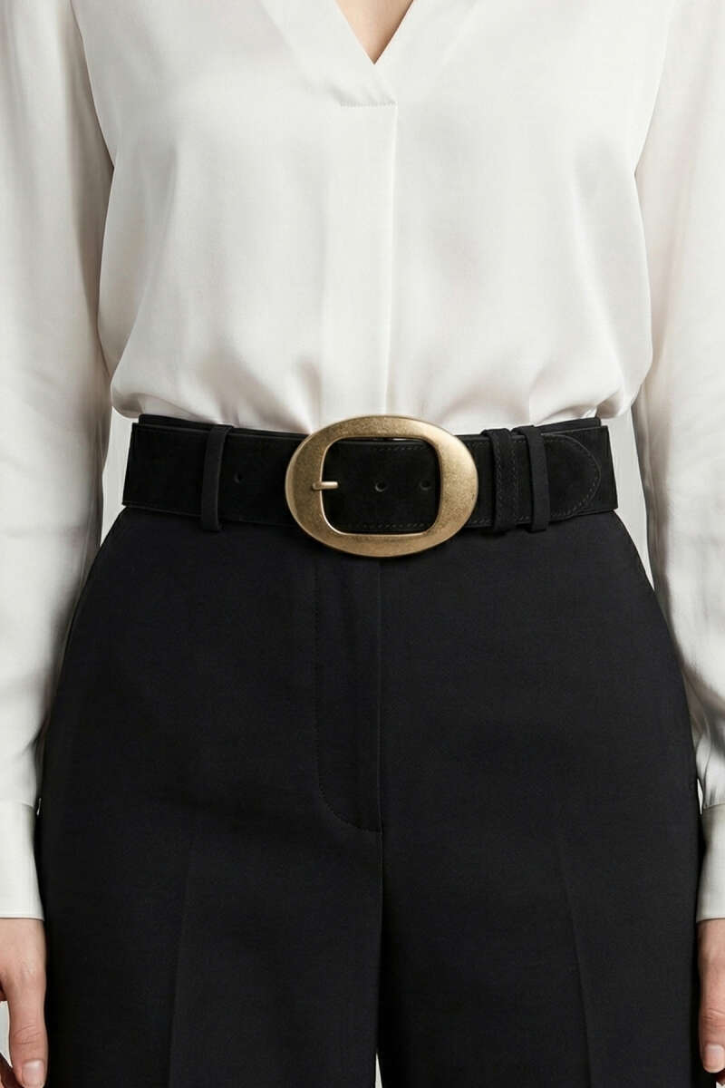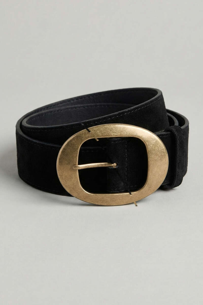 Tokalı Kalın Süet Kemer Siyah