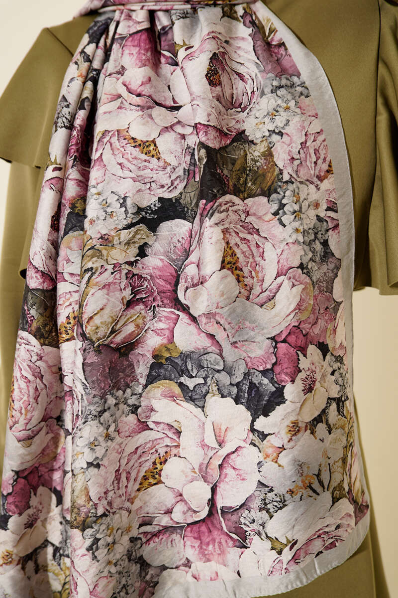 Mini Boncuk Detaylı Eşarp Kayrak Grisi