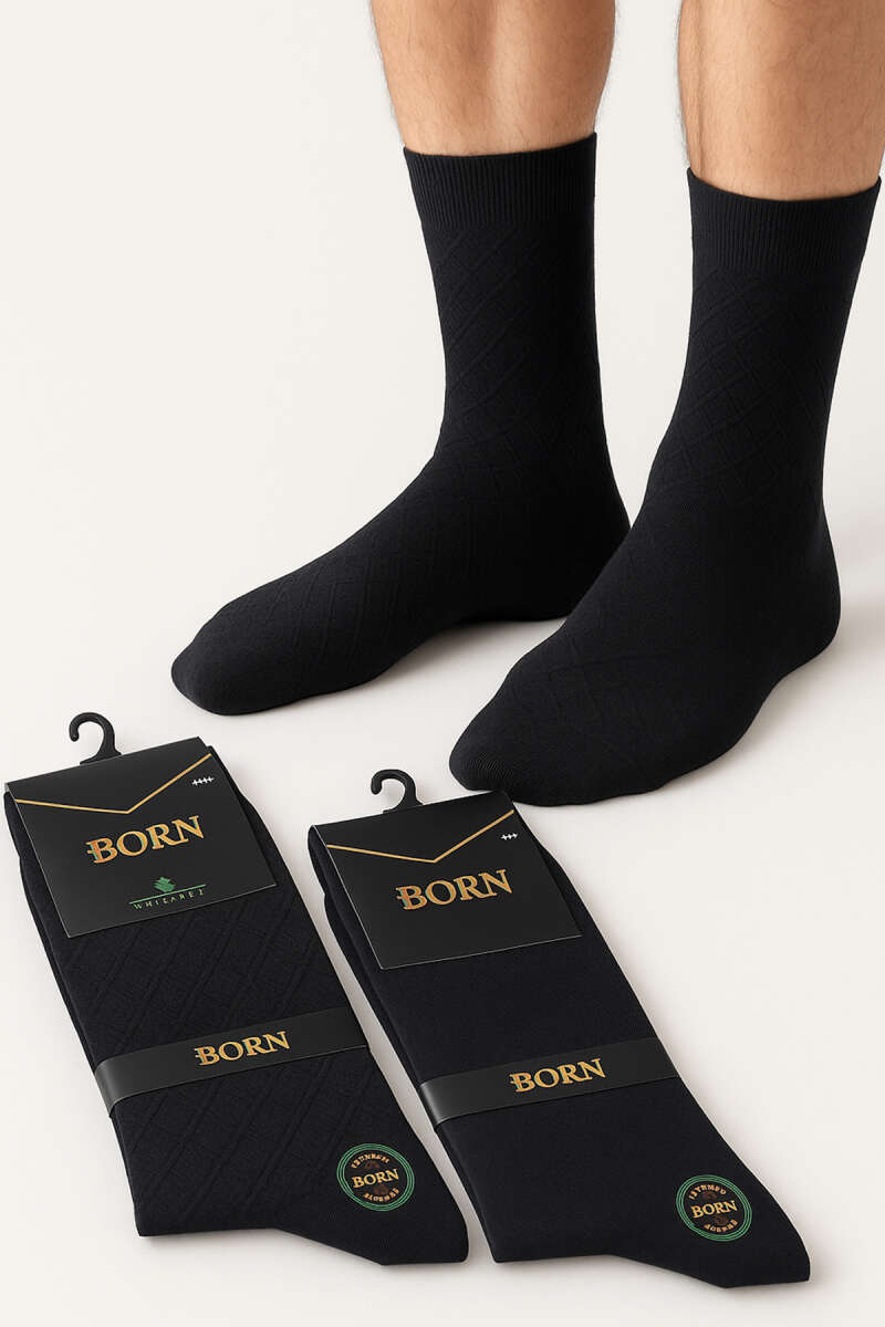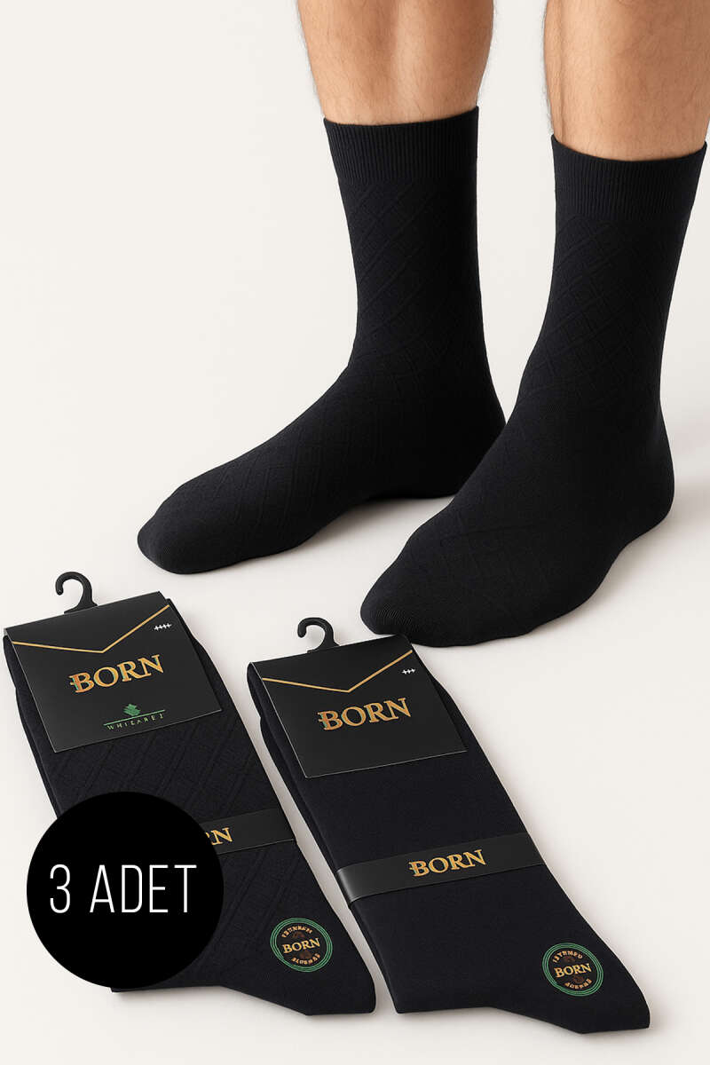 Erkek 3'lü Baklava Desen Bambu Çorap Siyah
