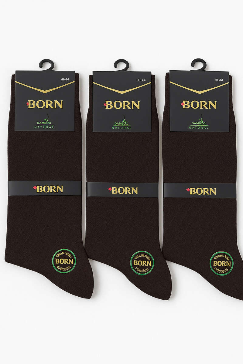 Erkek 3'lü Bambu Soket Çorap Kahve
