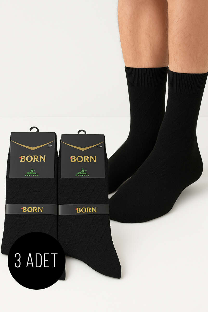 Erkek 3'lü Baklava Desen Bambu Çorap Siyah