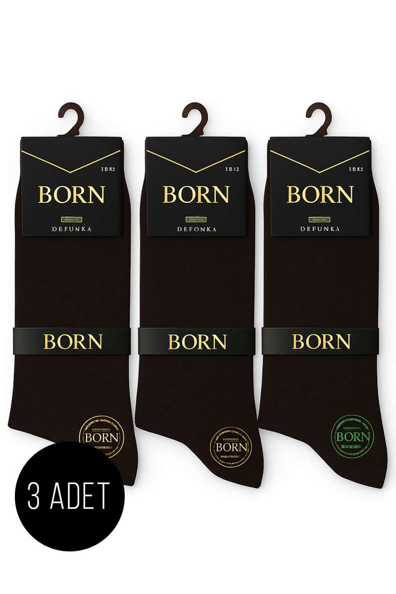 Erkek 3'lü Baklava Desen Soket Çorap Kahve