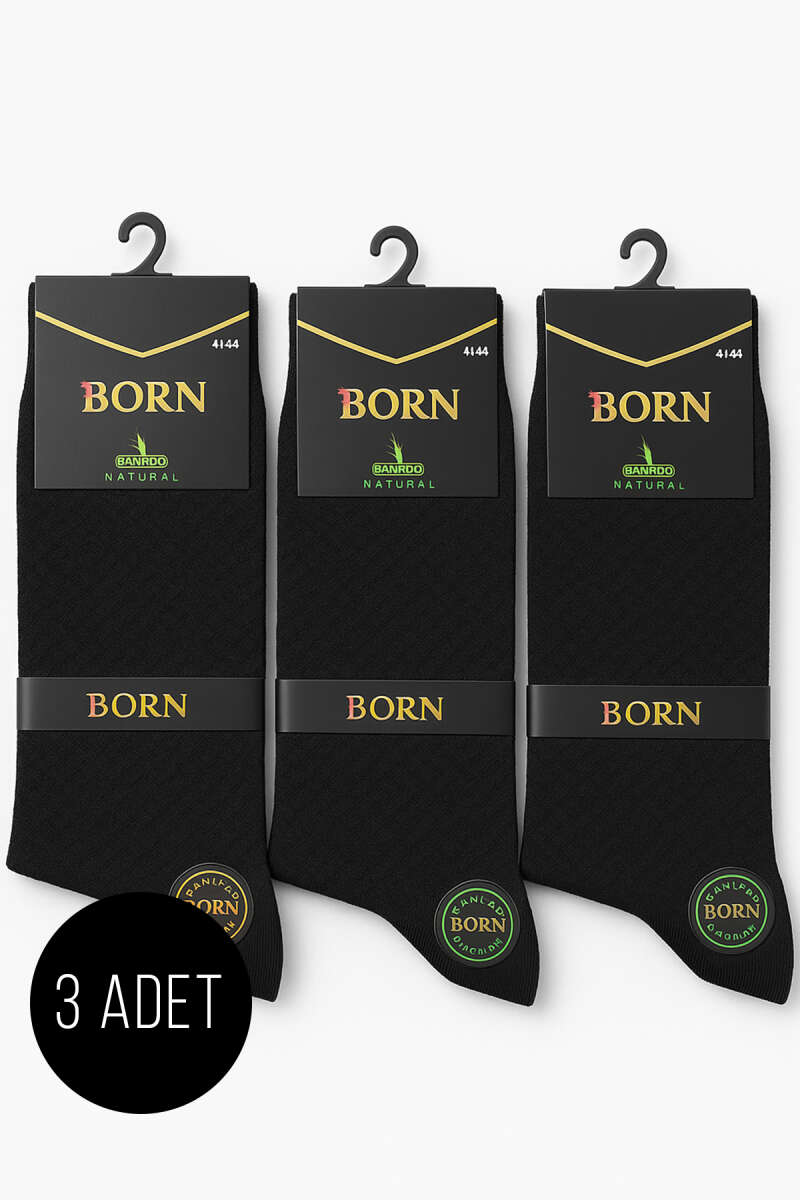 Erkek 3'lü Desenli Bambu Soket Çorap Siyah