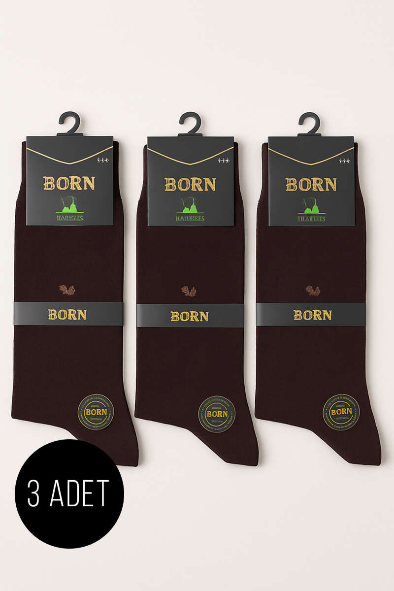 Erkek 3'lü Bambu Soket Çorap Kahve