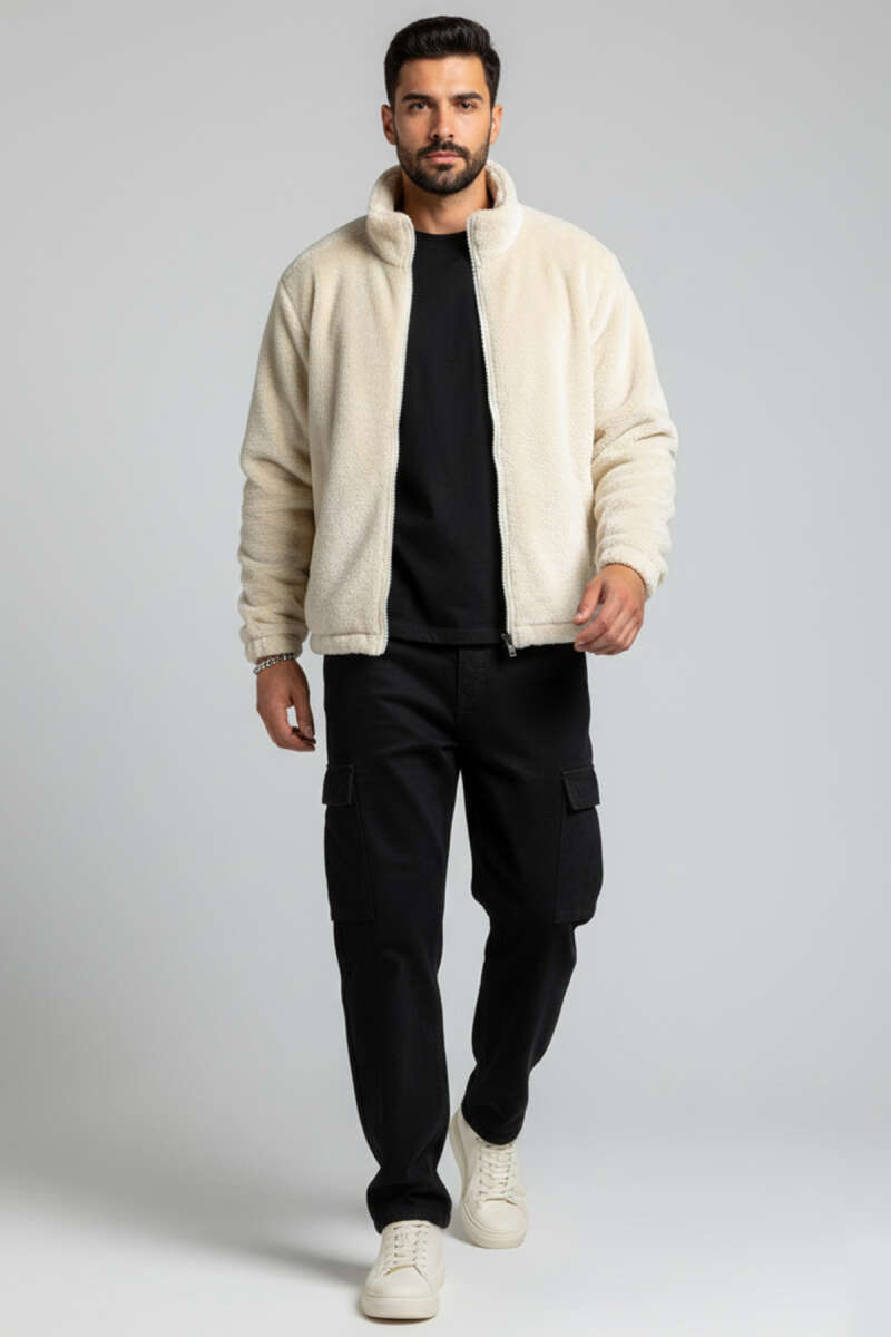 Fermuarlı Astarlı Erkek Kaşe Mont Bej