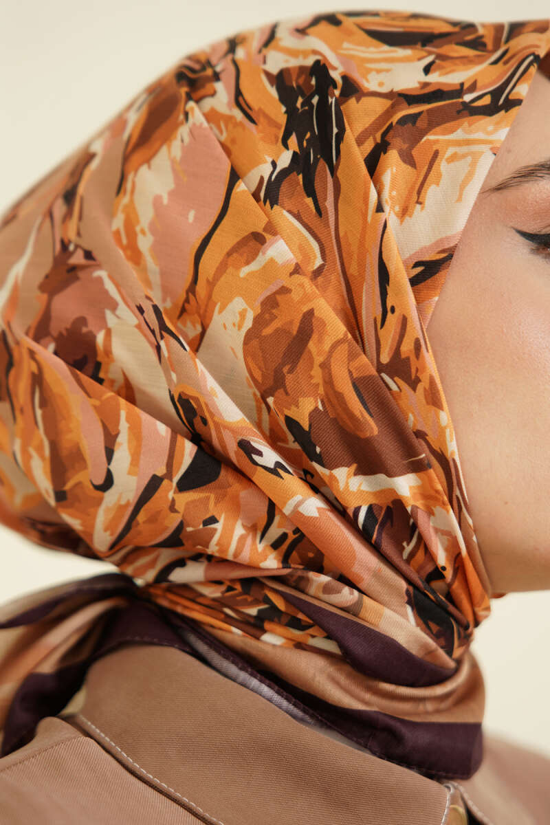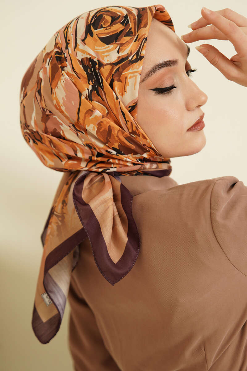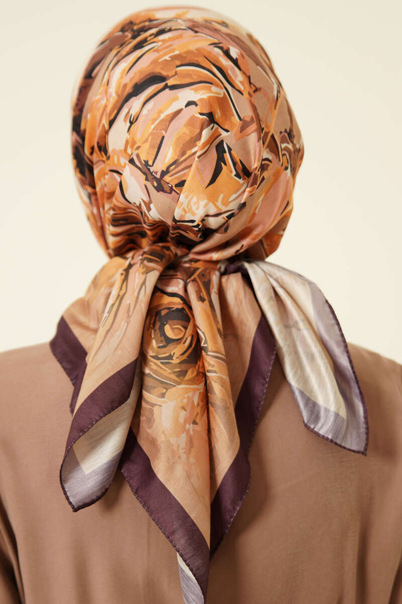 Eskiz Çiçek Desen Eşarp Mürdüm
