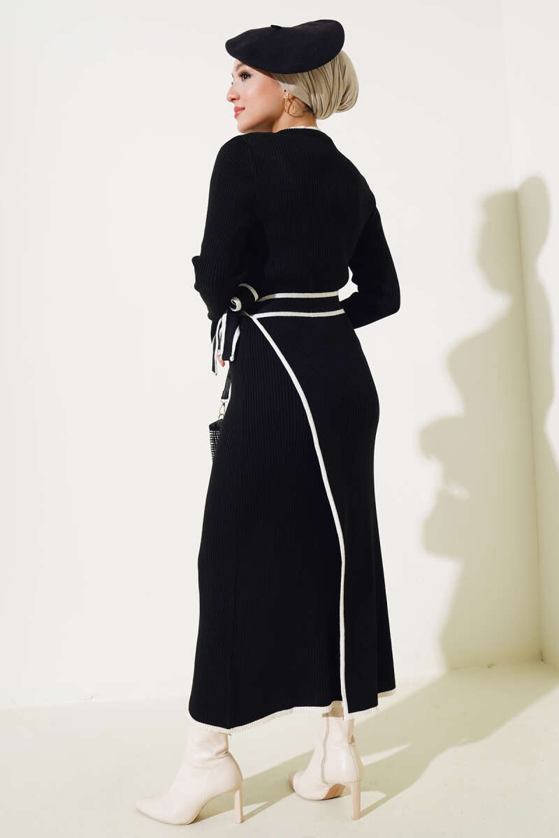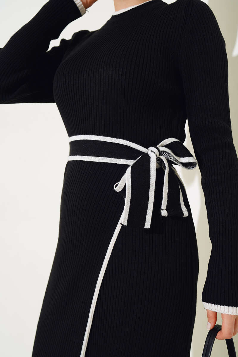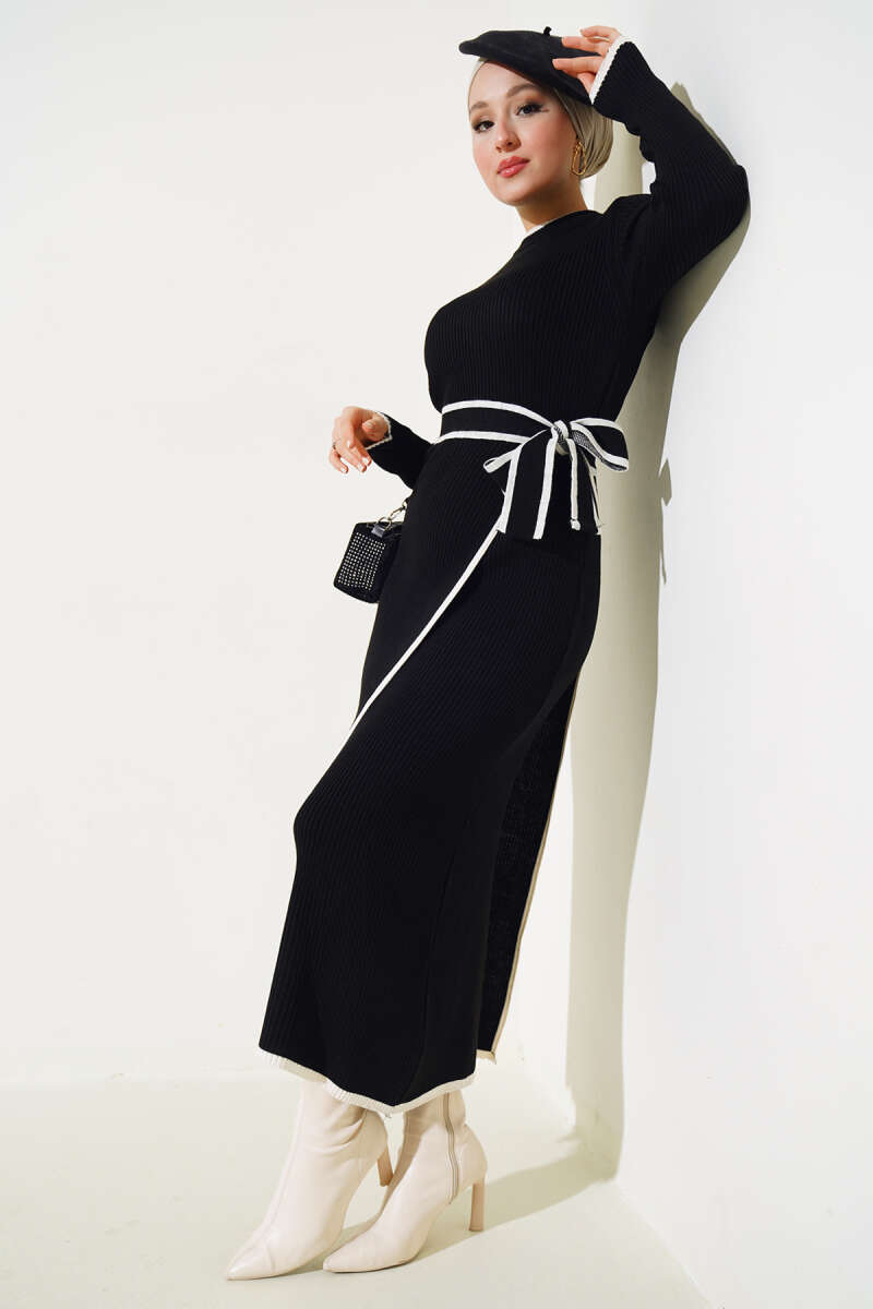 Pötikareli Yanları Büzgü Detay Siyah Tunik