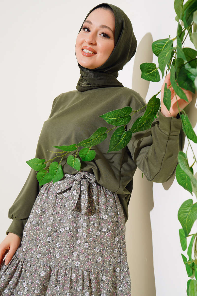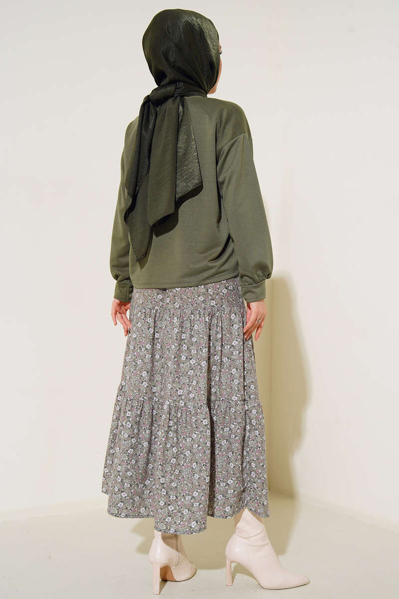 Eteği Desenli İkili Takım Haki