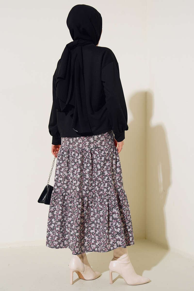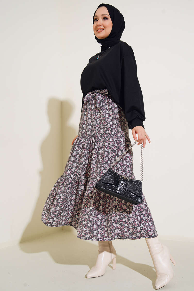 İkili takımımız etek ve tunik şeklindedir. Tuniğimiz bisiklet yakalı ve düşük omuzludur. Etek kat kat olup kloş modele sahiptir. Eteğin kendi kumaşından kuşağı bulunmaktadır. Etek beli lastiklidir.