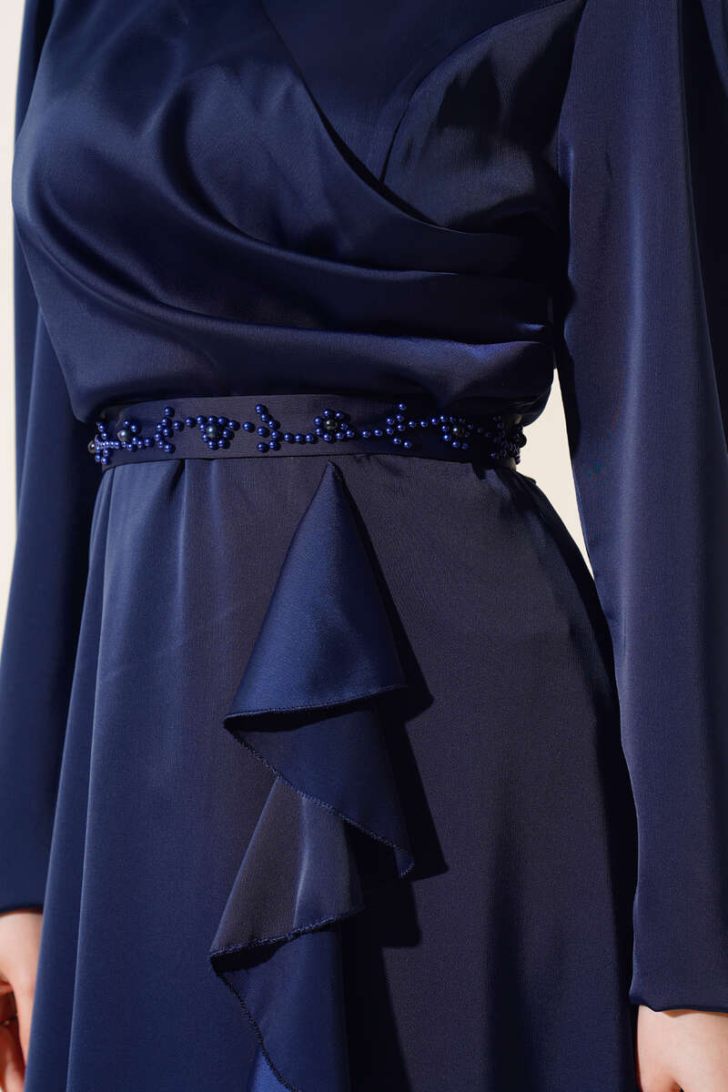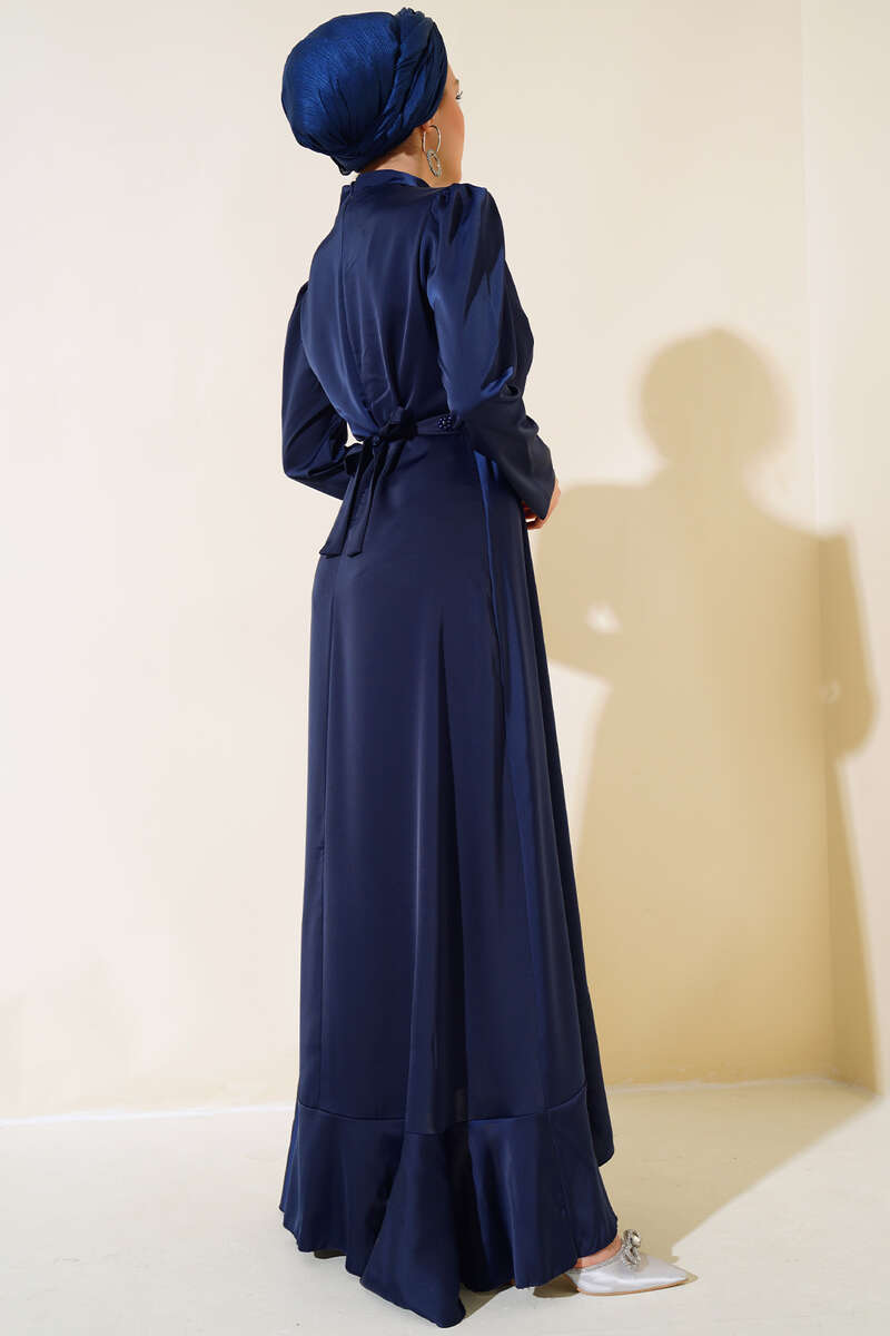 Yeni sezon saten abiye elbisemiz sizlerle beraber. Elbisemizin önünde büzgülüdür. Boydan ve etek ucundan fırfırlıdır. Önü kısa arkası uzundur. Kendi kumaşından kuşağı ve kuşağında boncuklar bulunur. Arkası fermuarlıdır.  Özel günlerinizin vazgeçilmezi olacaktır.