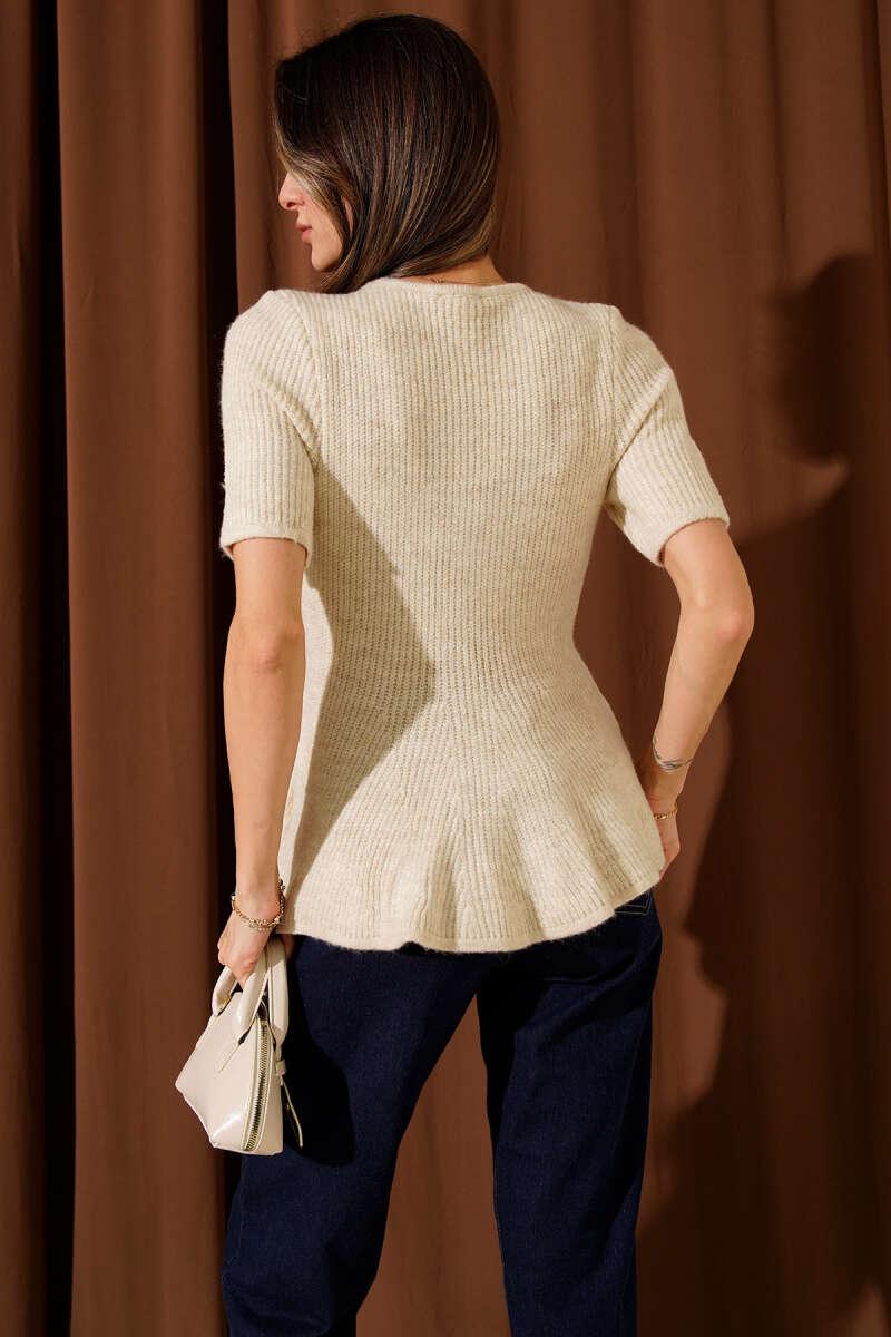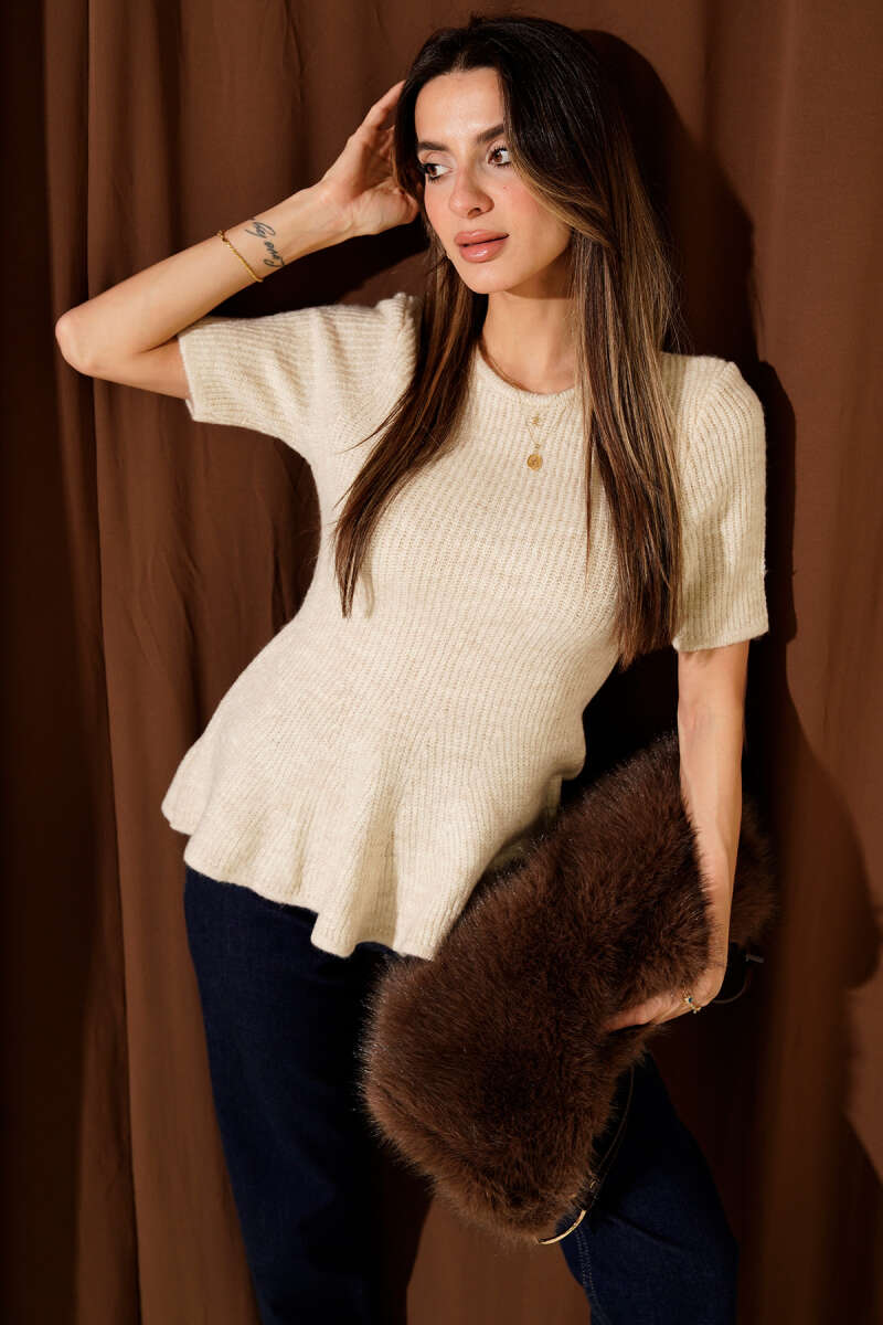 Uzun Kollu Yarım Fermuarlı Bluz Ekru
