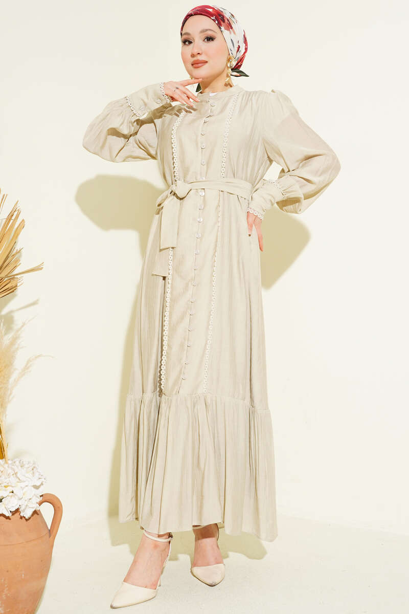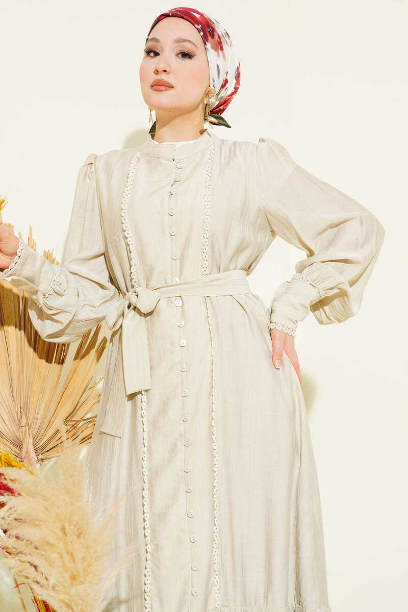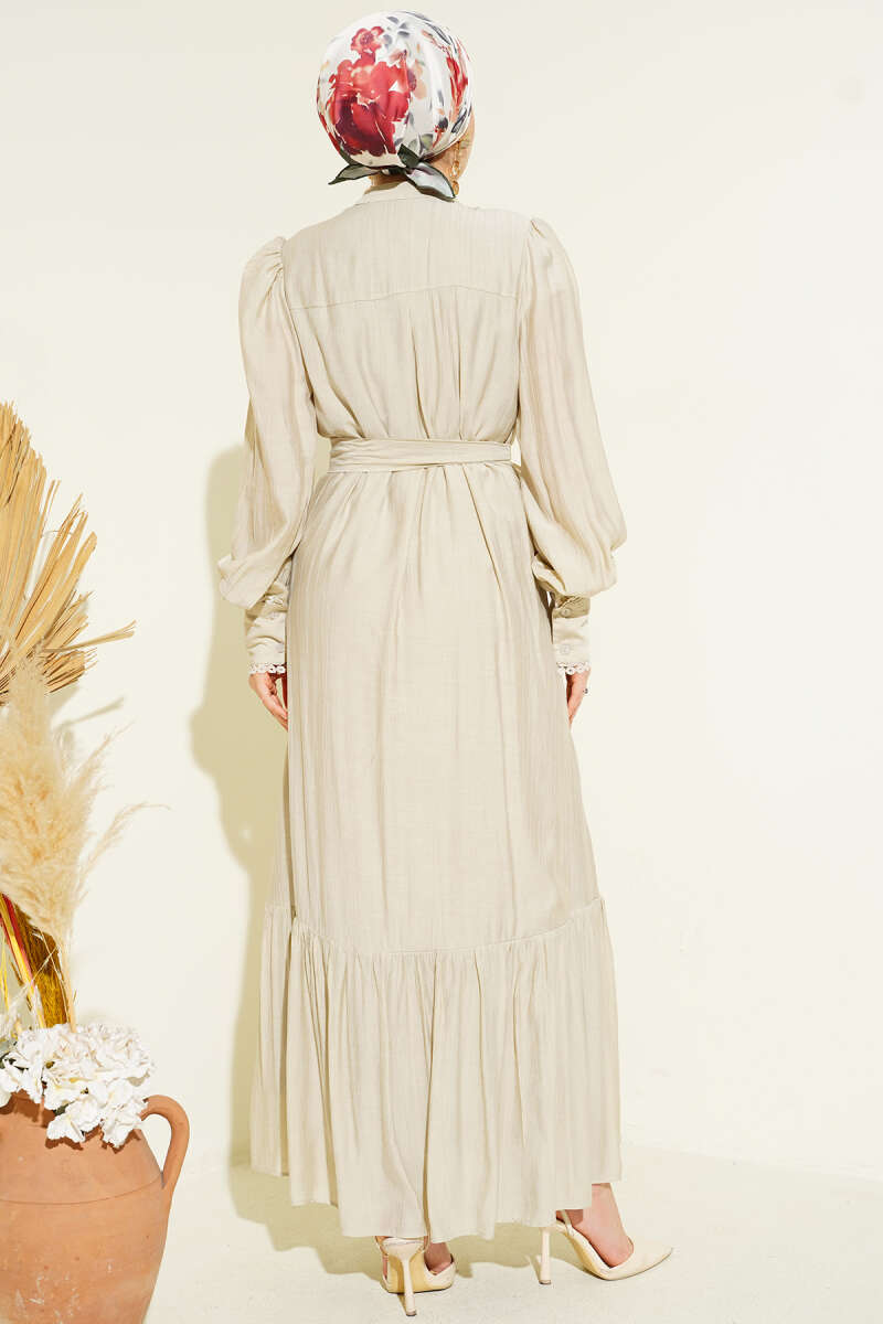 Yarım Düğmeli Yan Bağlamalı Kot Elbise Açık Mavi