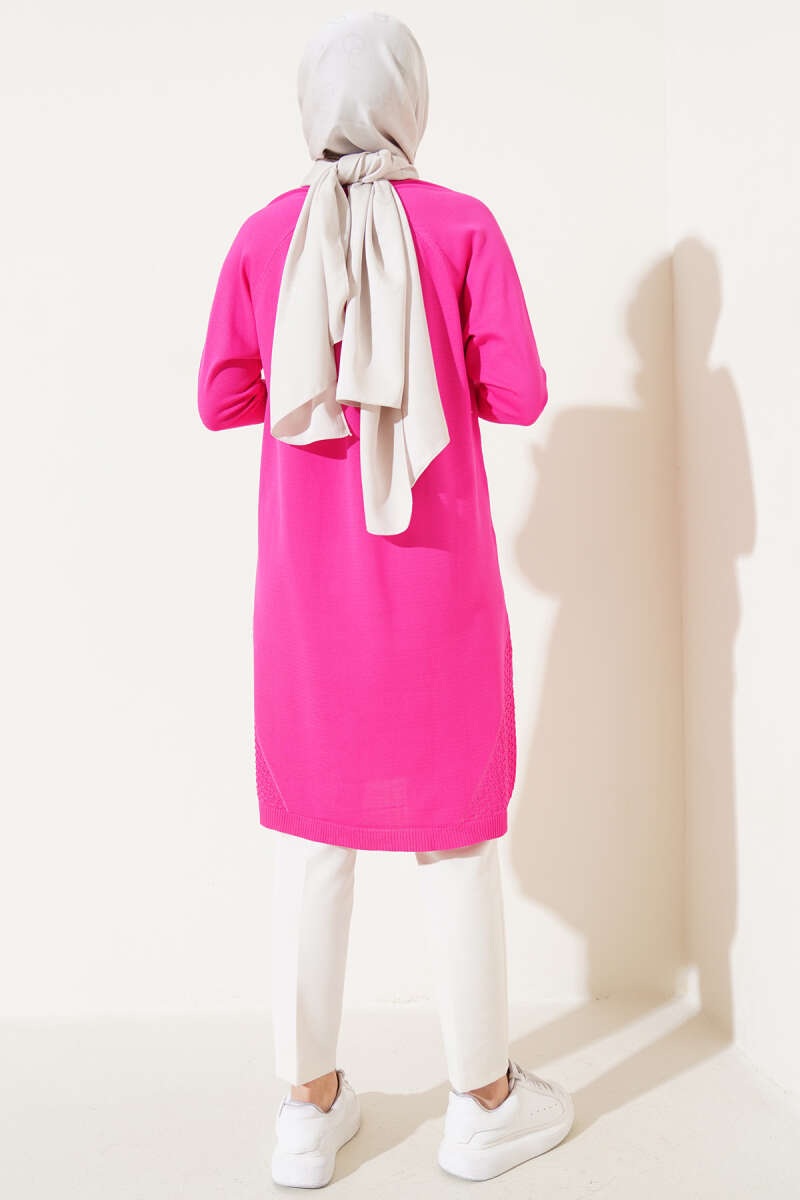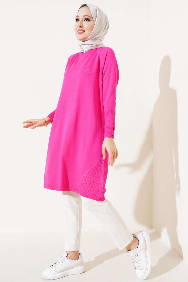 Yanı Yırtmaçlı Oversize Triko Tunik Fuşya