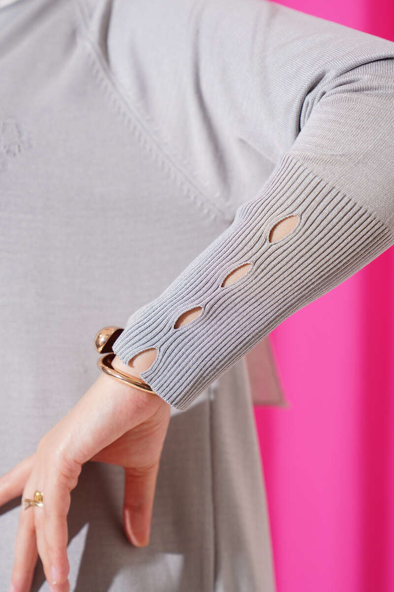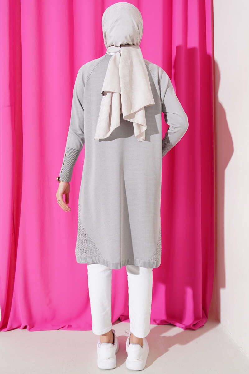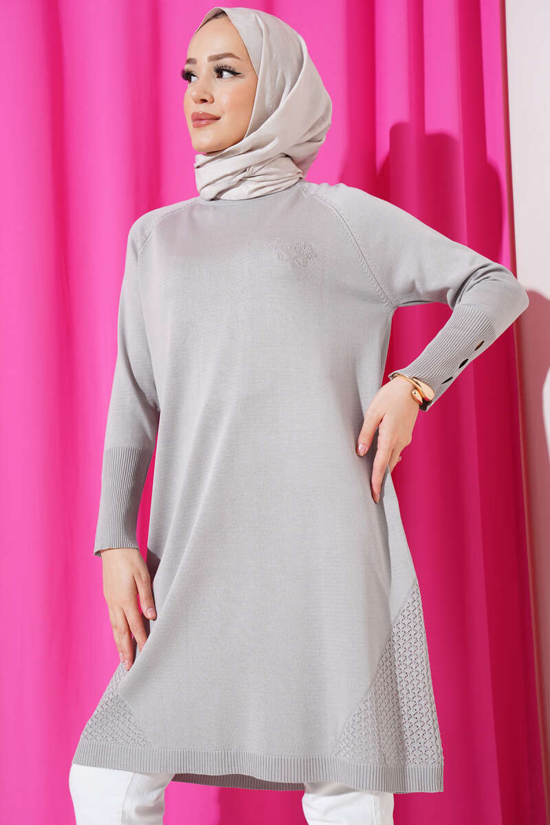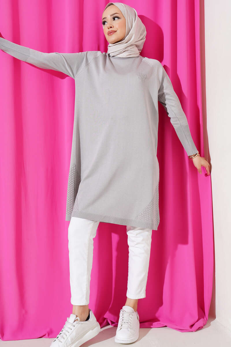 Etek Ucu Dantel Detaylı Triko Tunik Gri