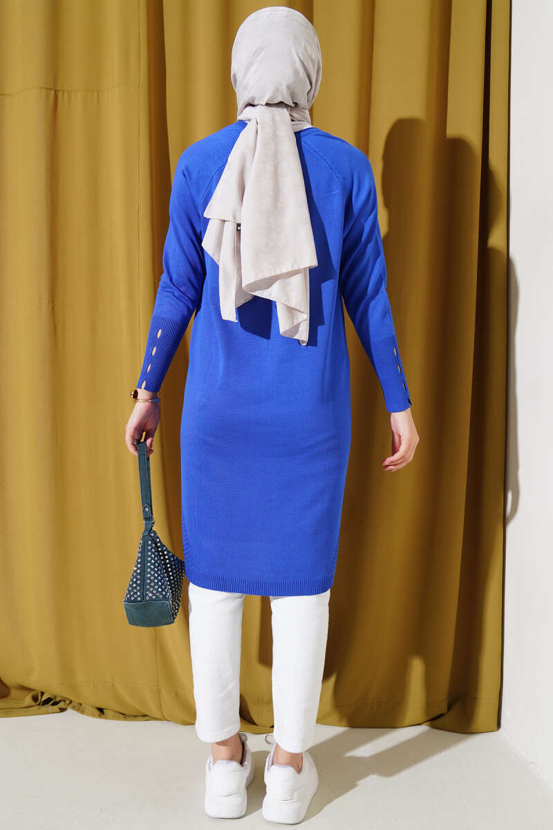 Yanı Yırtmaçlı Oversize Triko Tunik Lacivert