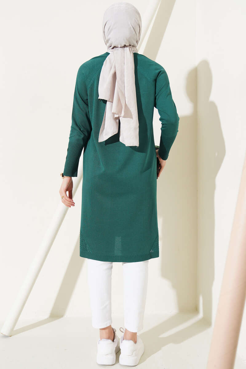 Etek Ucu Dantel Detaylı Triko Tunik Zümrüt