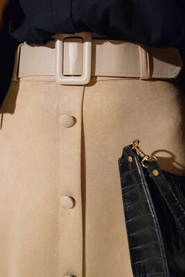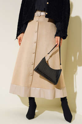 Etek Ucu Derili Süet Etek Bej