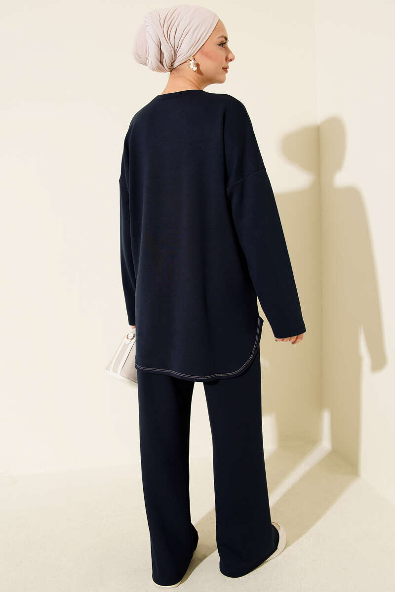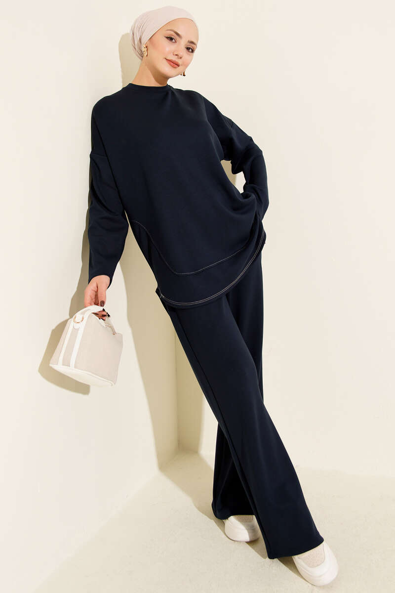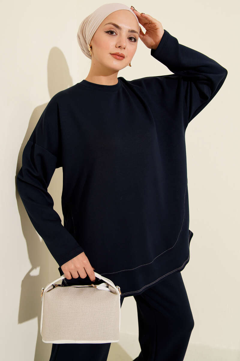Fermuarlı Etekli Scuba İkili Takım Lacivert
