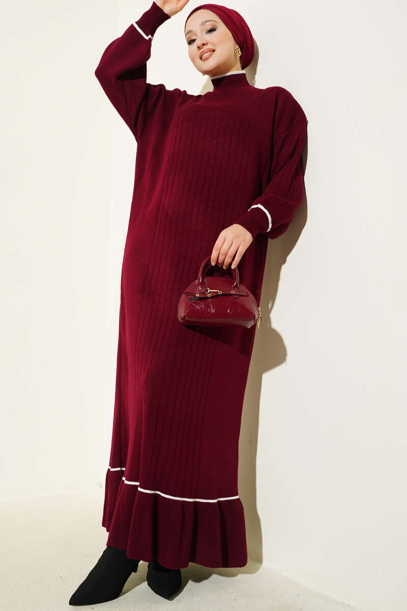Etek Ucu Fırfır Detaylı Triko Elbise Taş