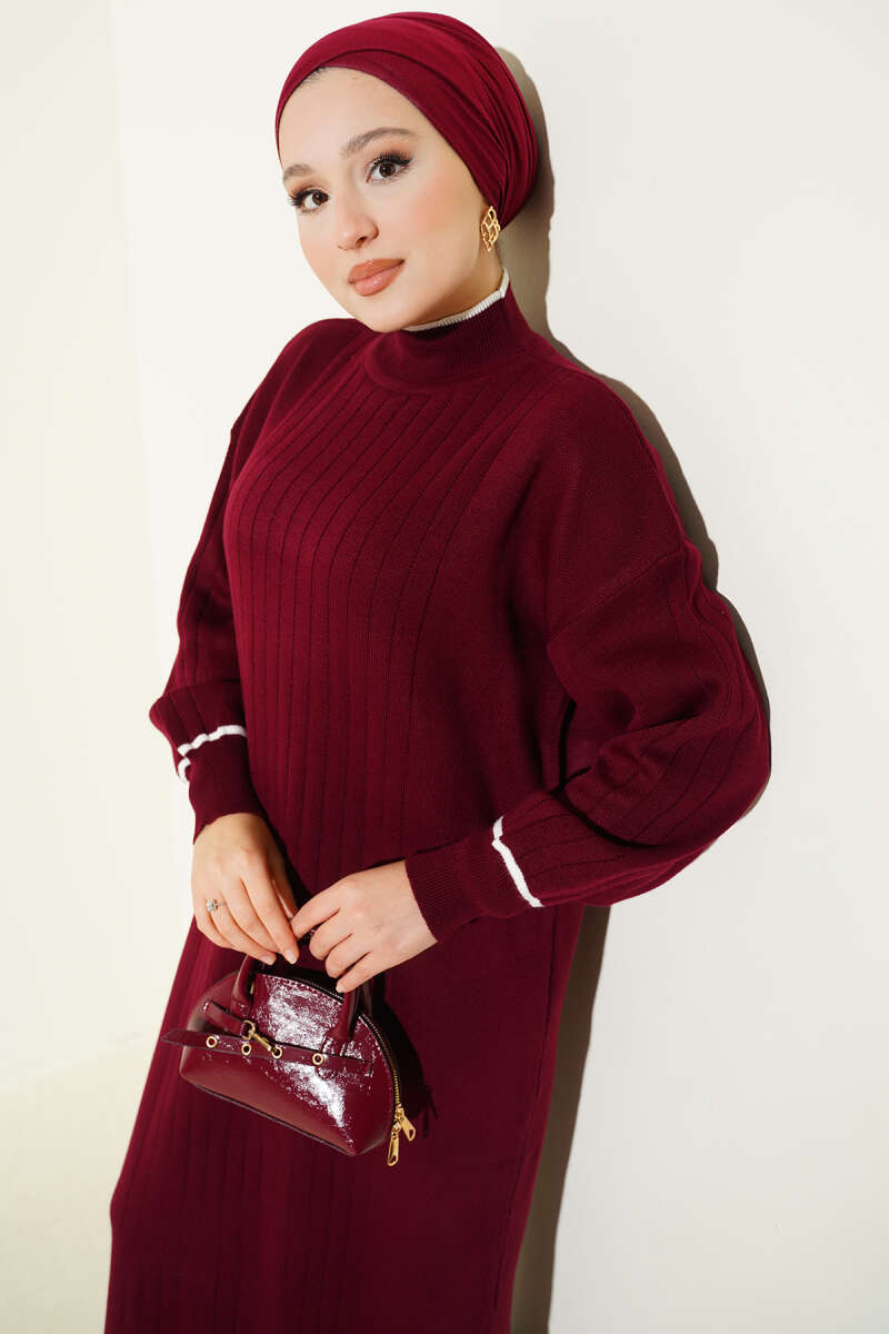 Kol Lastikli Bürümcük Elbise Mürdüm