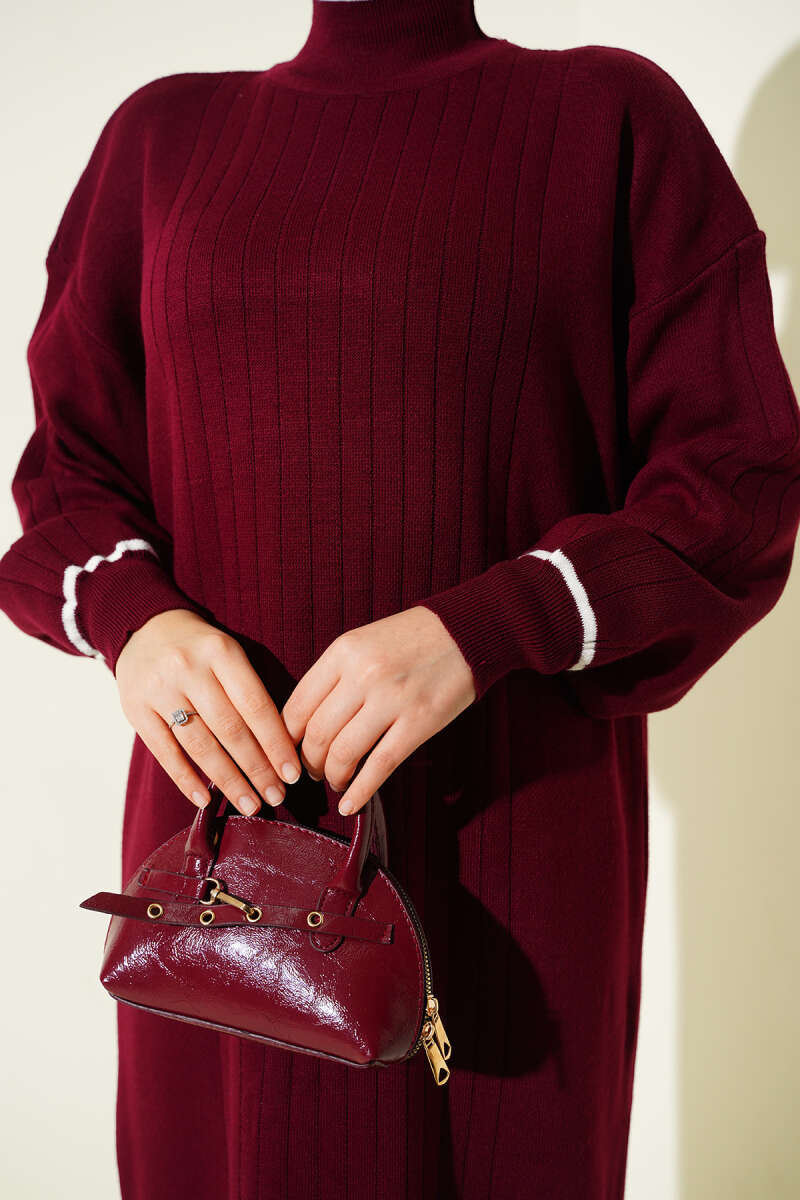 Yanları İp Bağcık Detaylı Saten Elbise Bordo