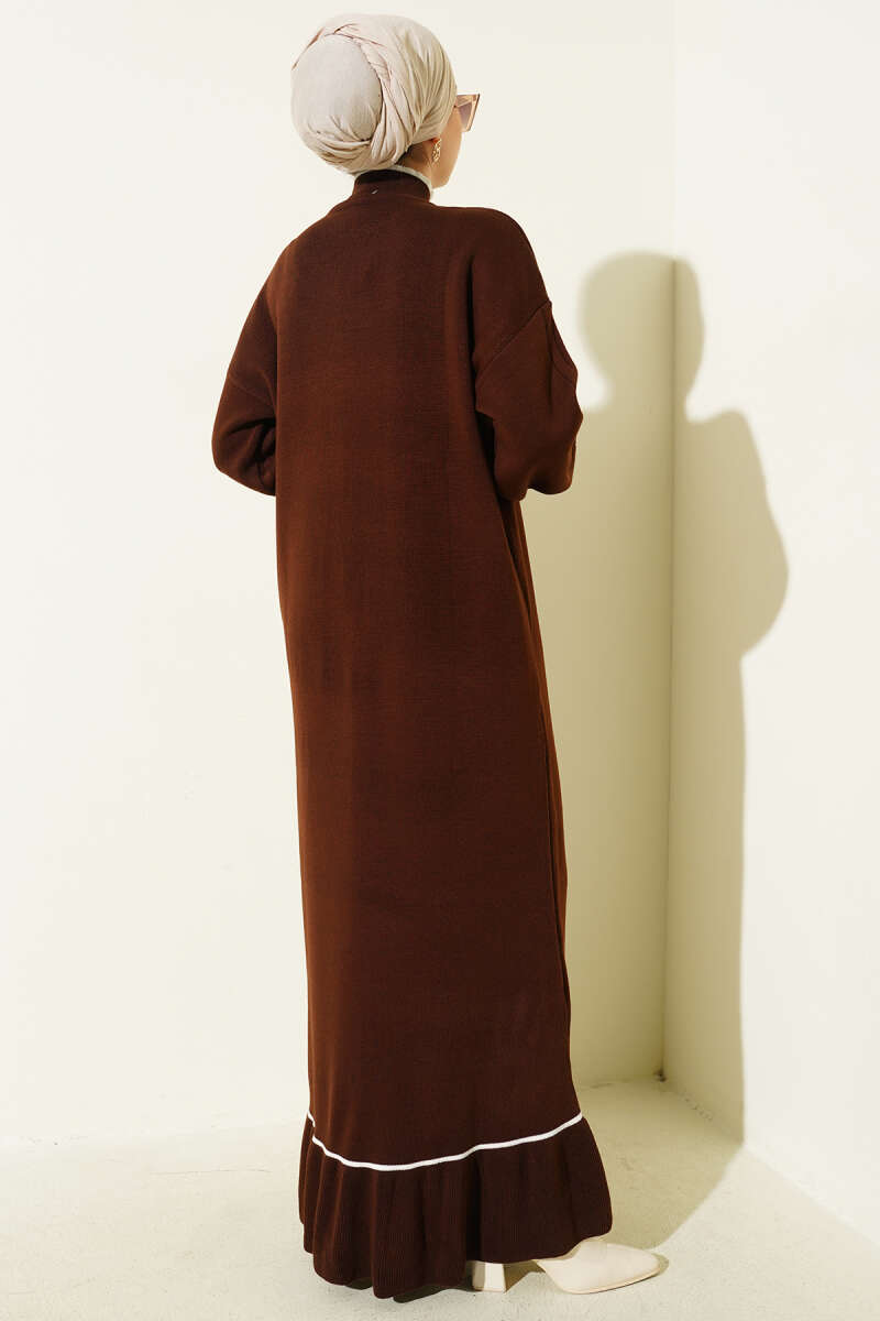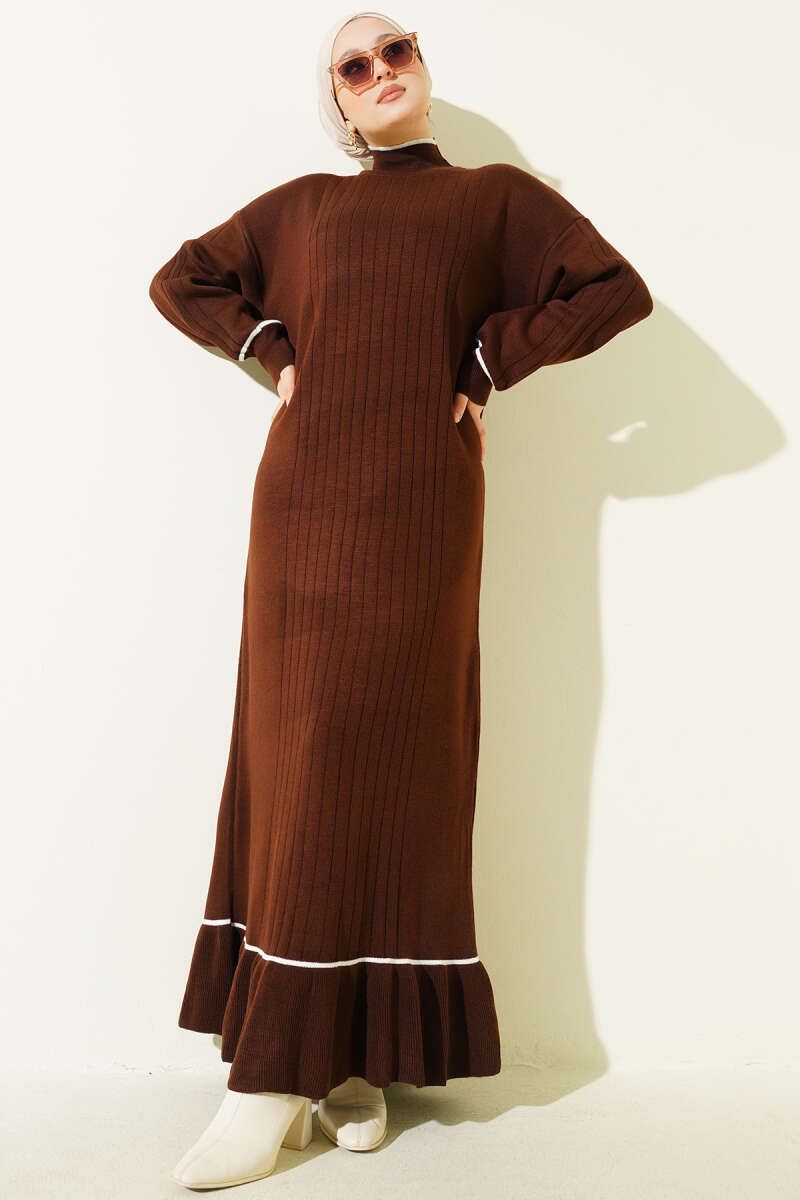 Etek Ucu Fırfır Detaylı Triko Elbise Füme
