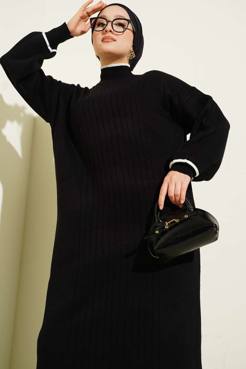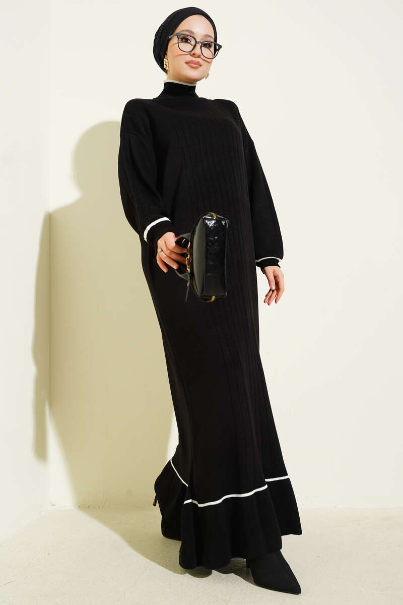 Etek Ucu Fırfır Detaylı Triko Elbise Taş