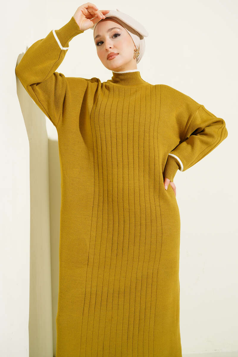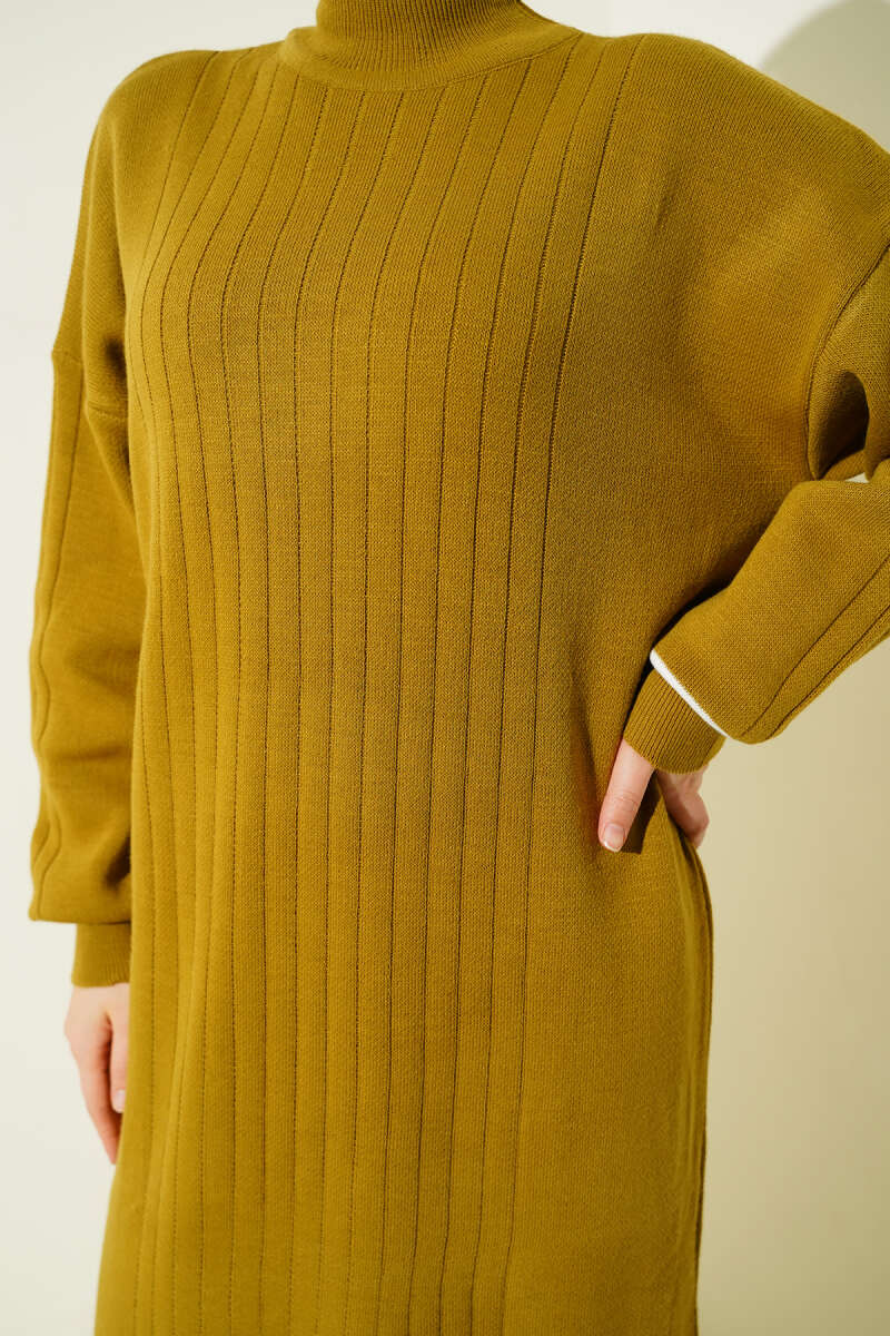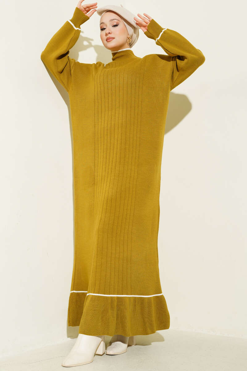 Etek Ucu Fırfır Detaylı Triko Elbise Taş