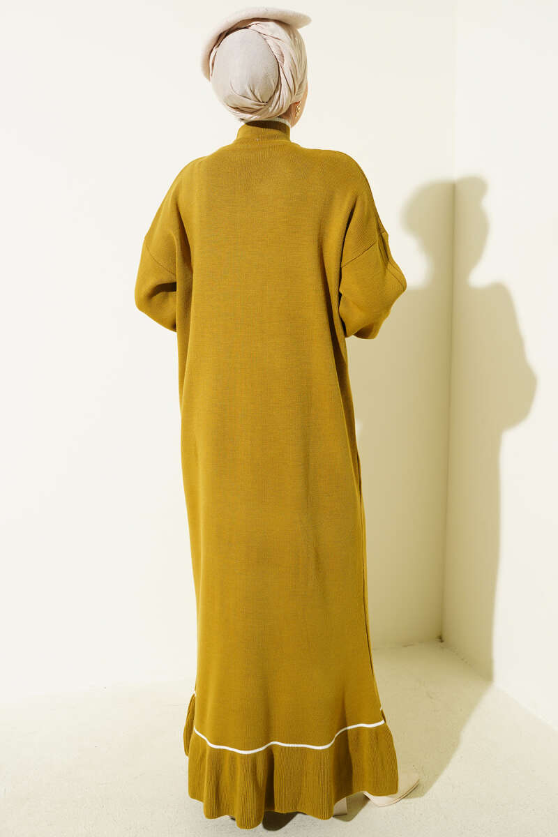 Etek Ucu Fırfır Detaylı Triko Elbise Kahve