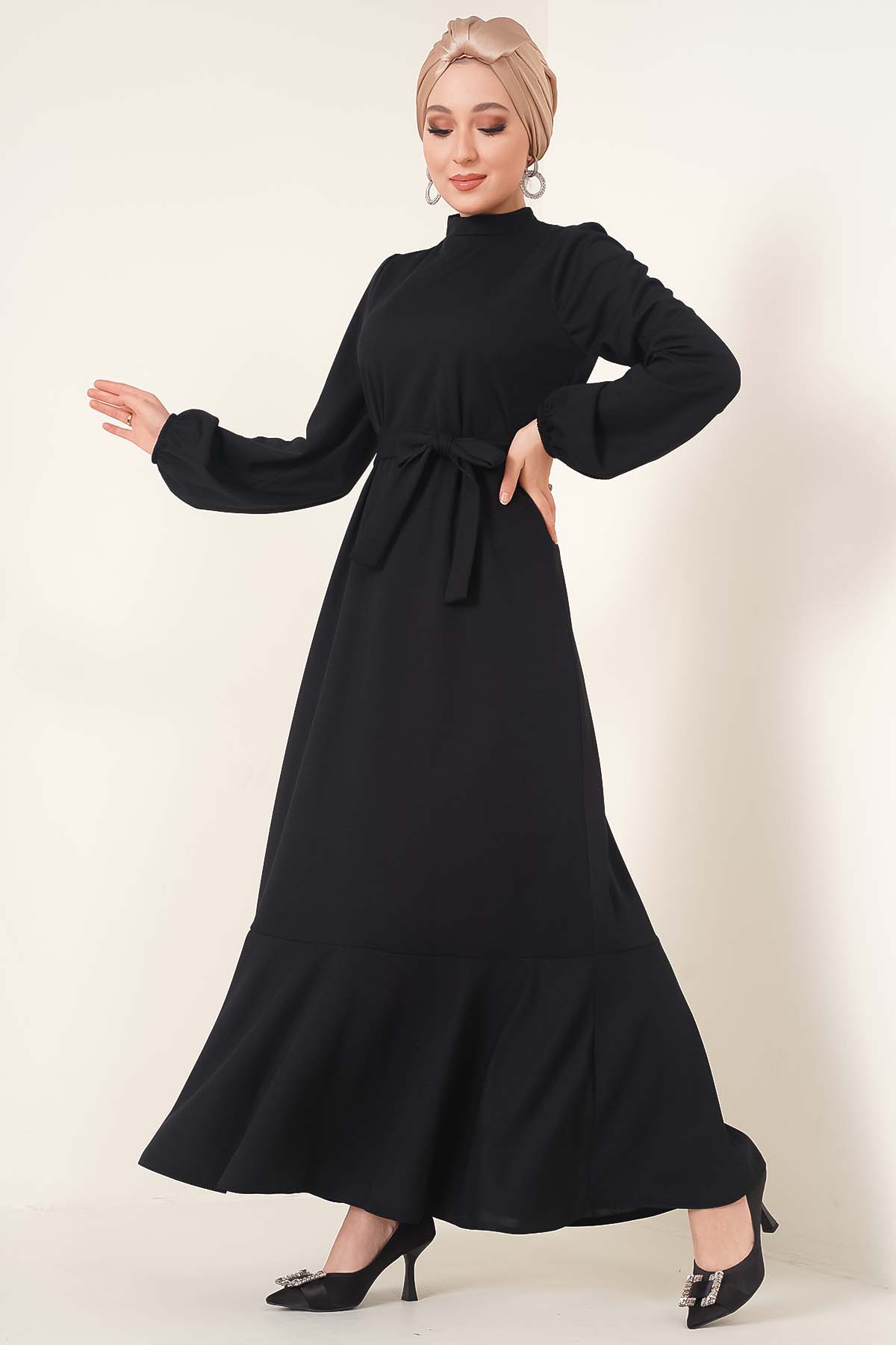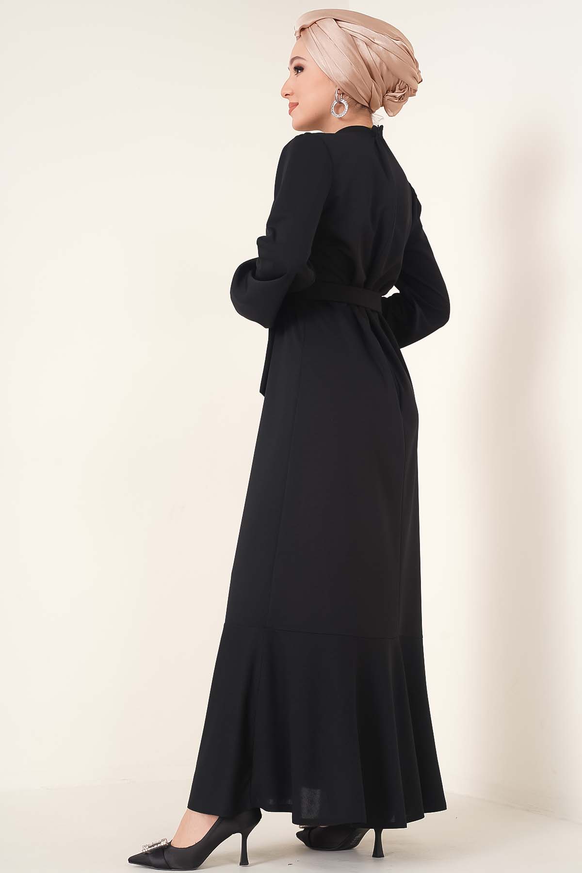 Etek Ucu Fırfırlı Elbise Siyah